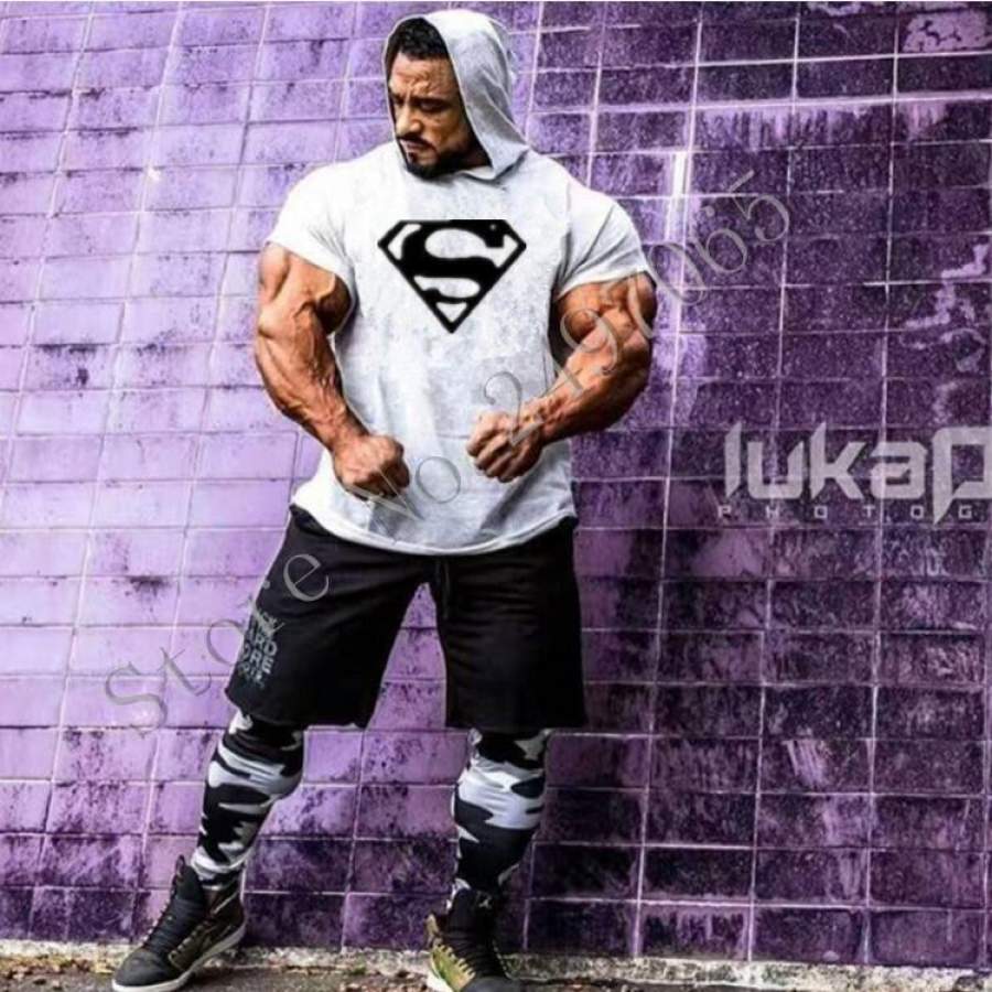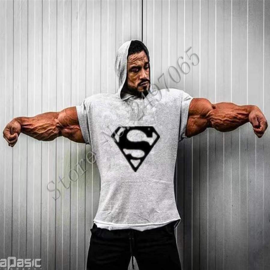 Men Gyms Hoodie T-Shirt Cotton short Sleeve fitness Clothing Bodybuilding Slim Fit Sportswear Hoodie T shirt