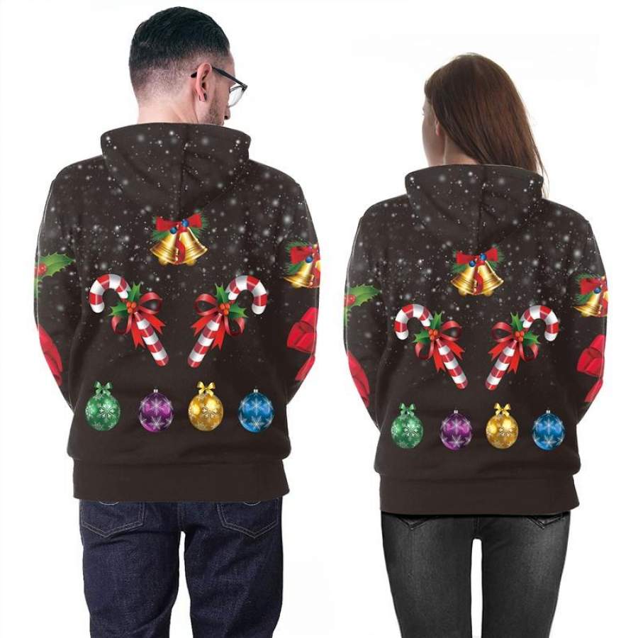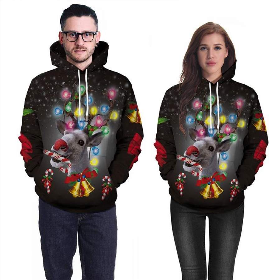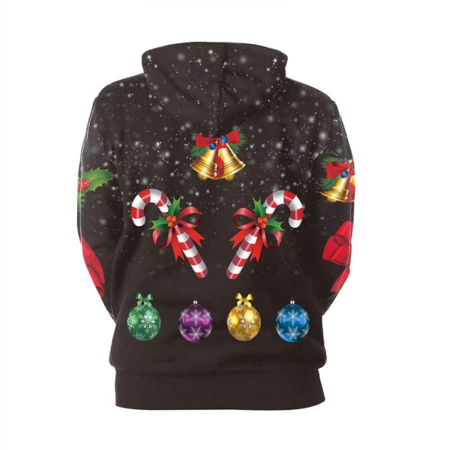 Mens Black Hoodies 3D Graphic Printed Merry Christmas Deer Pullover