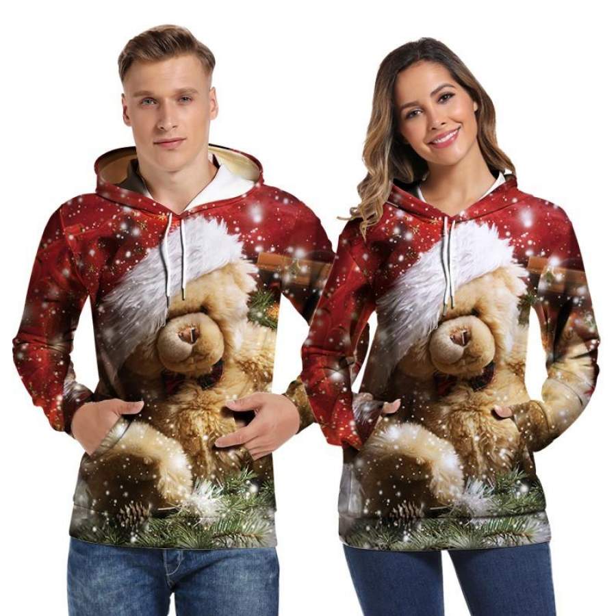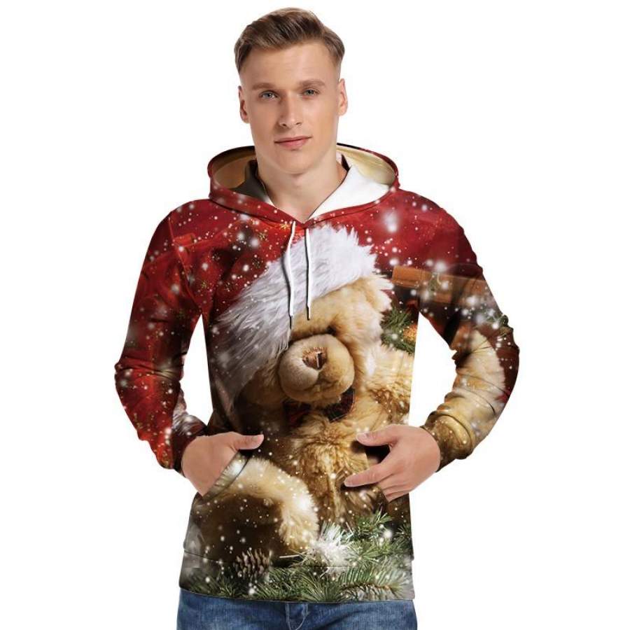 Mens Hoodies 3D Graphic Printed Christmas Bear Pullover Hoodie
