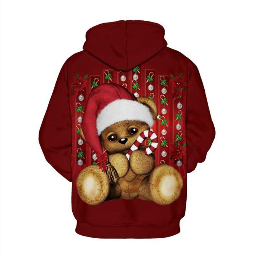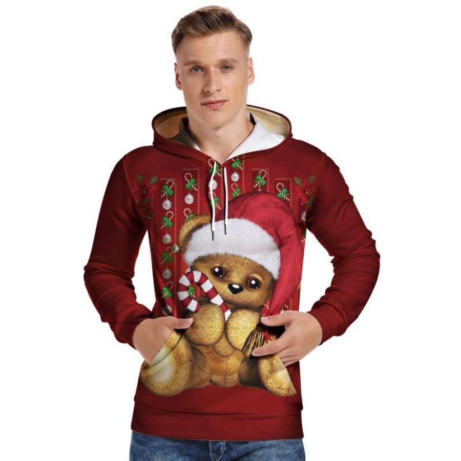Mens Hoodies 3D Graphic Printed Christmas Bear Red Pullover Hoodie