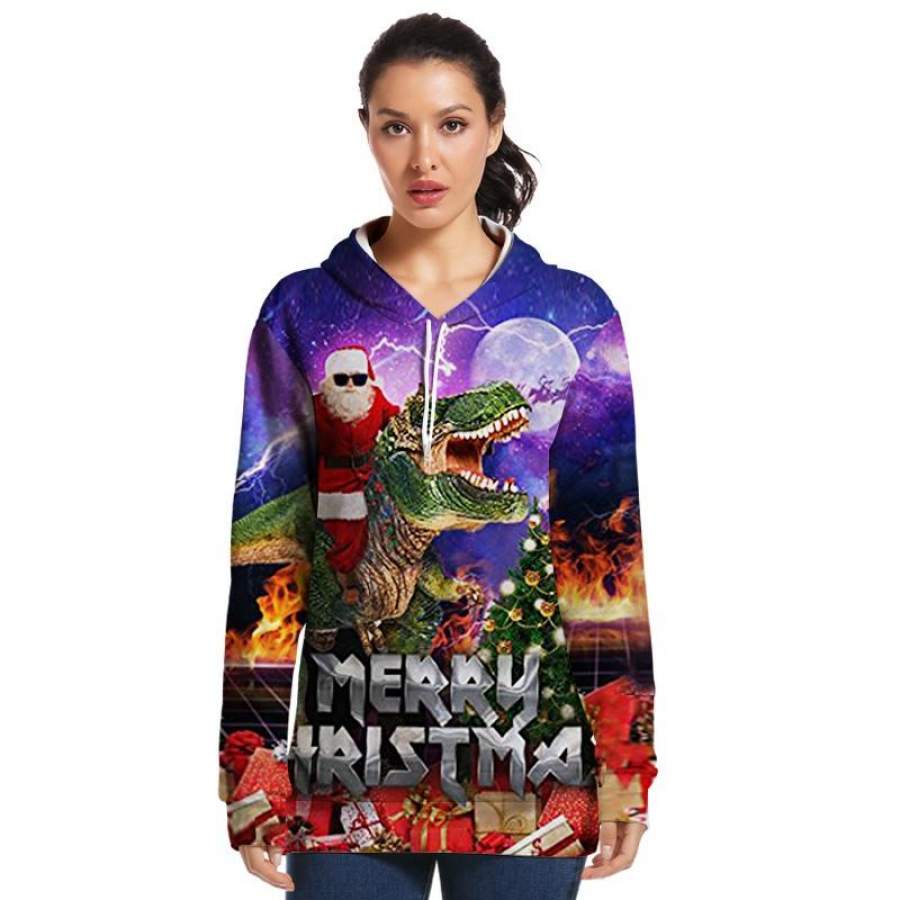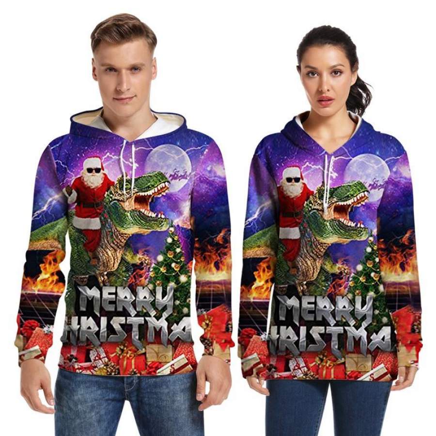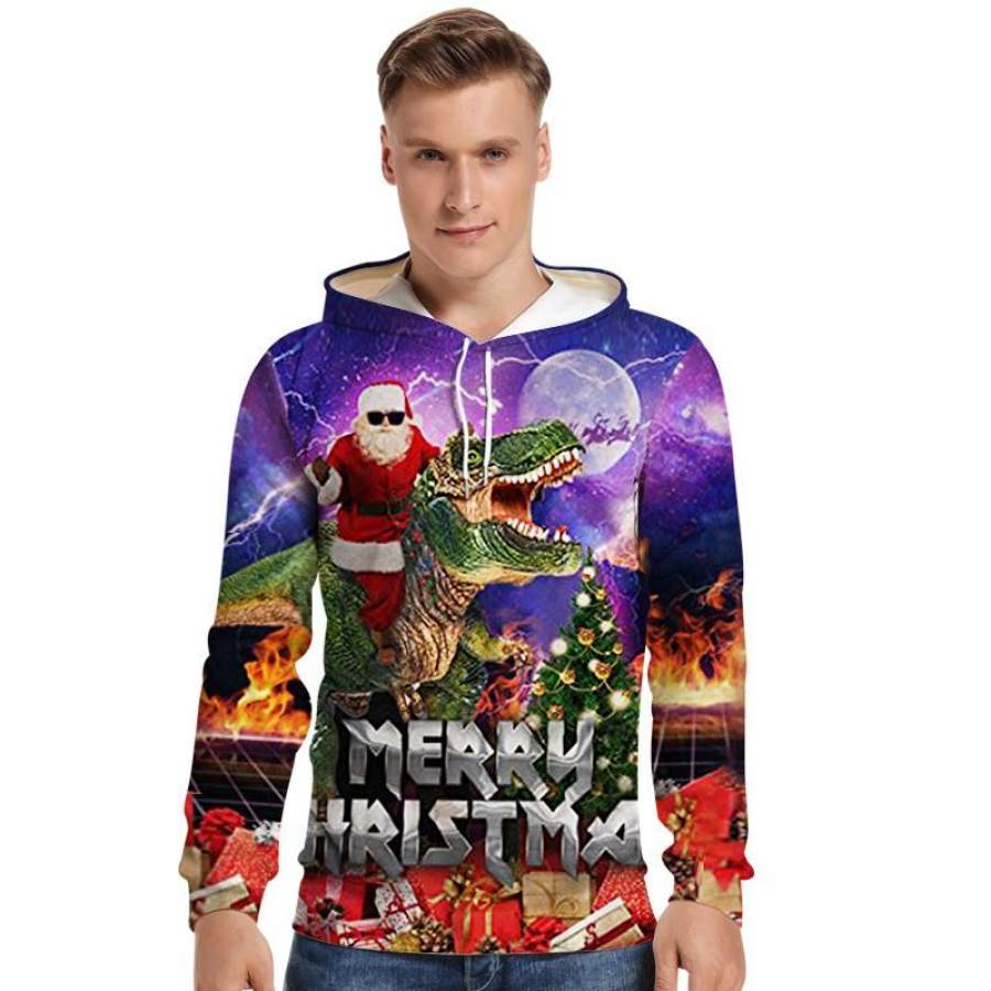 Mens Hoodies 3D Graphic Printed Christmas Dinosaur Pullover Hoodie