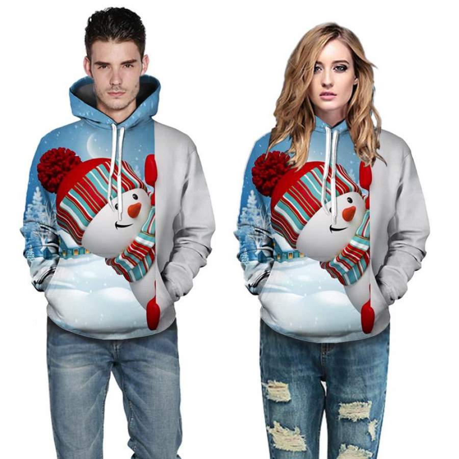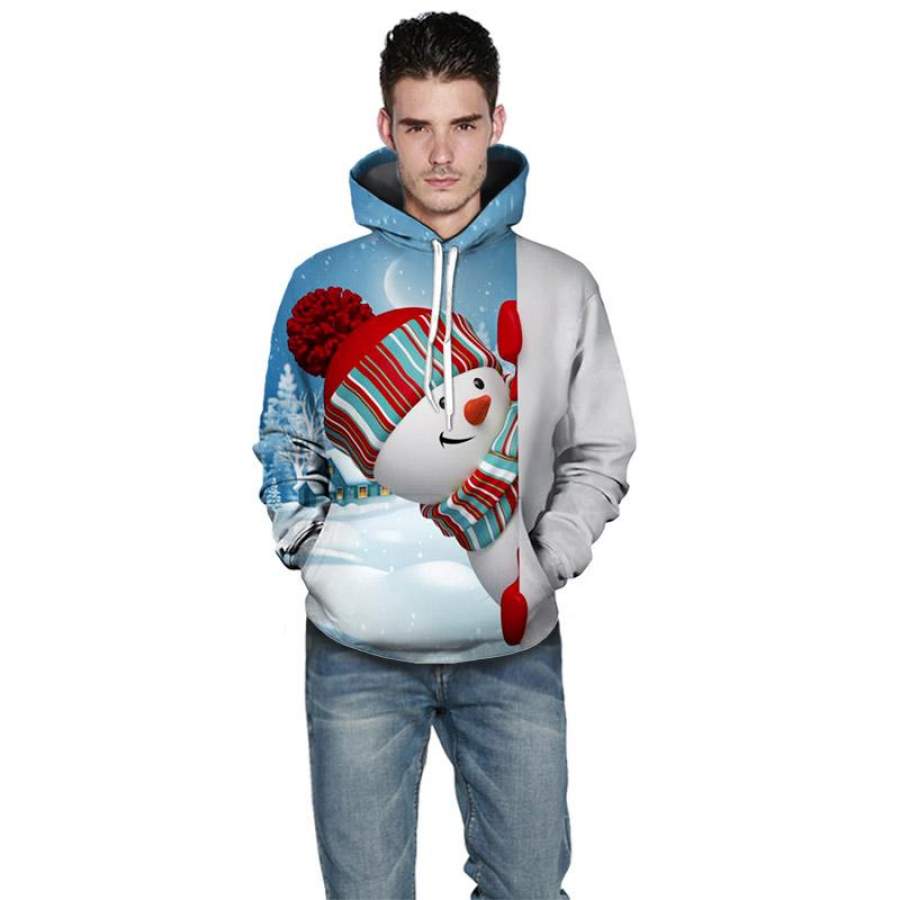 Mens Hoodies 3D Graphic Printed Christmas Kawaii Snowman Pullover Hoodie