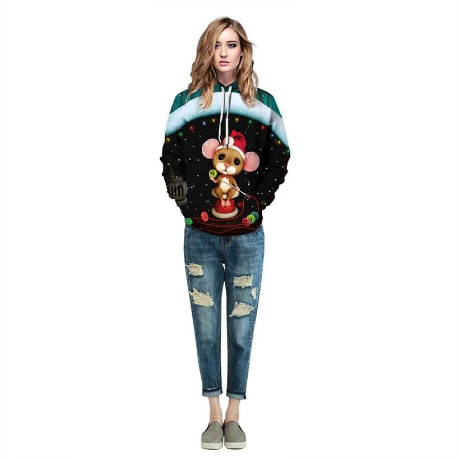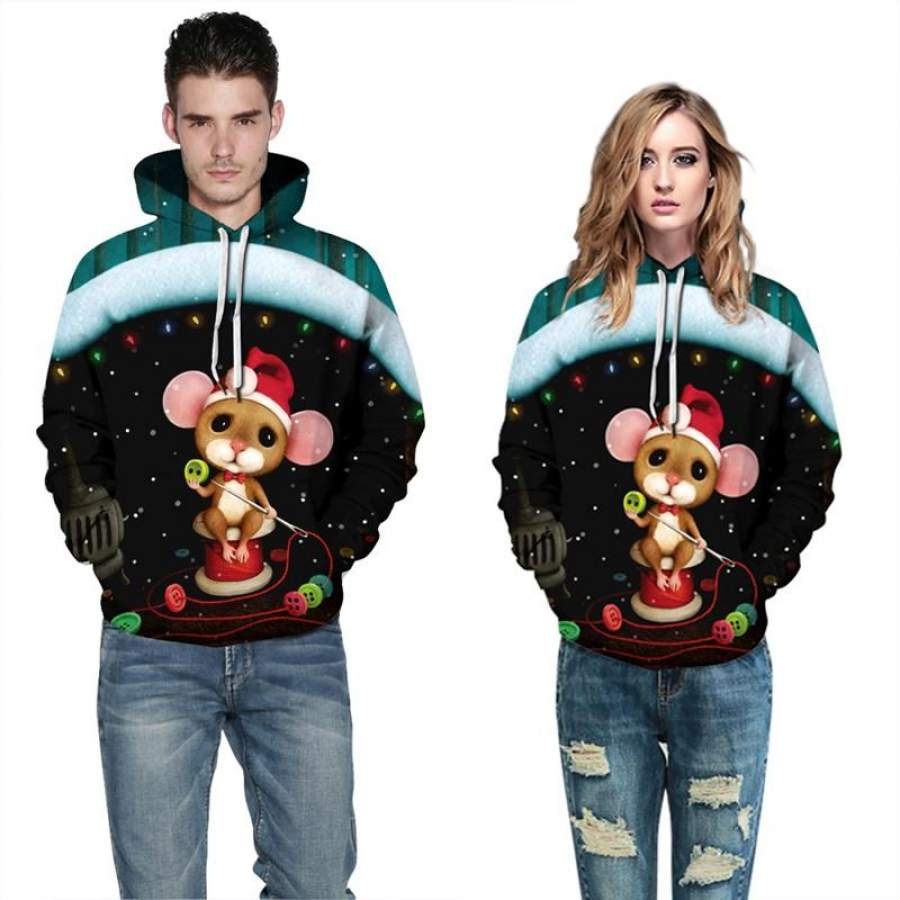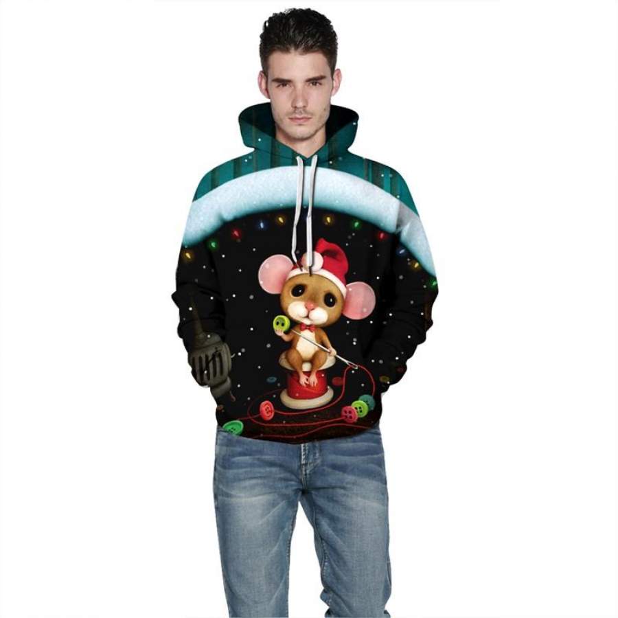 Mens Hoodies 3D Graphic Printed Christmas Sewing Bear Pullover