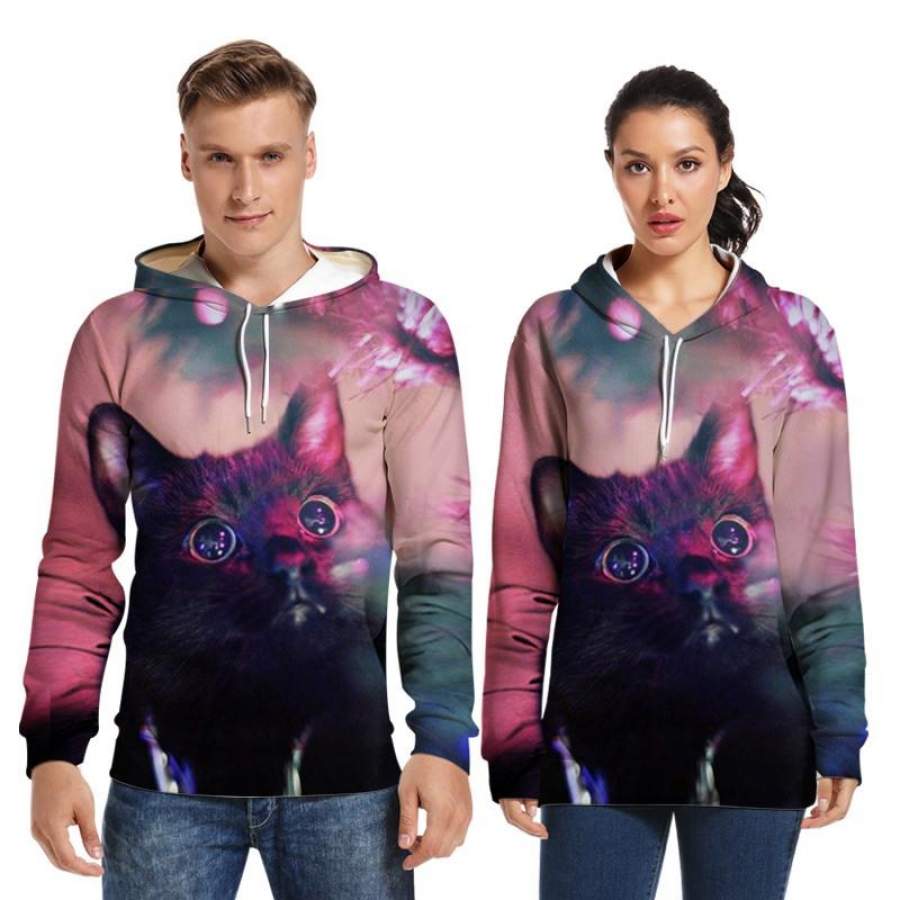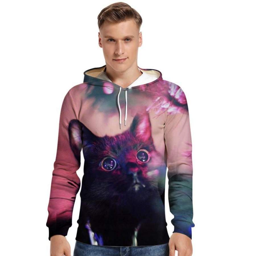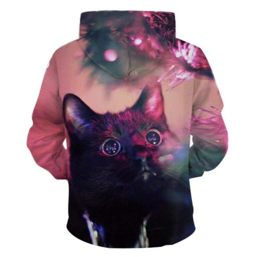 Mens Hoodies 3D Graphic Printed Christmas Starry Sky Cat Pullover Hoodie