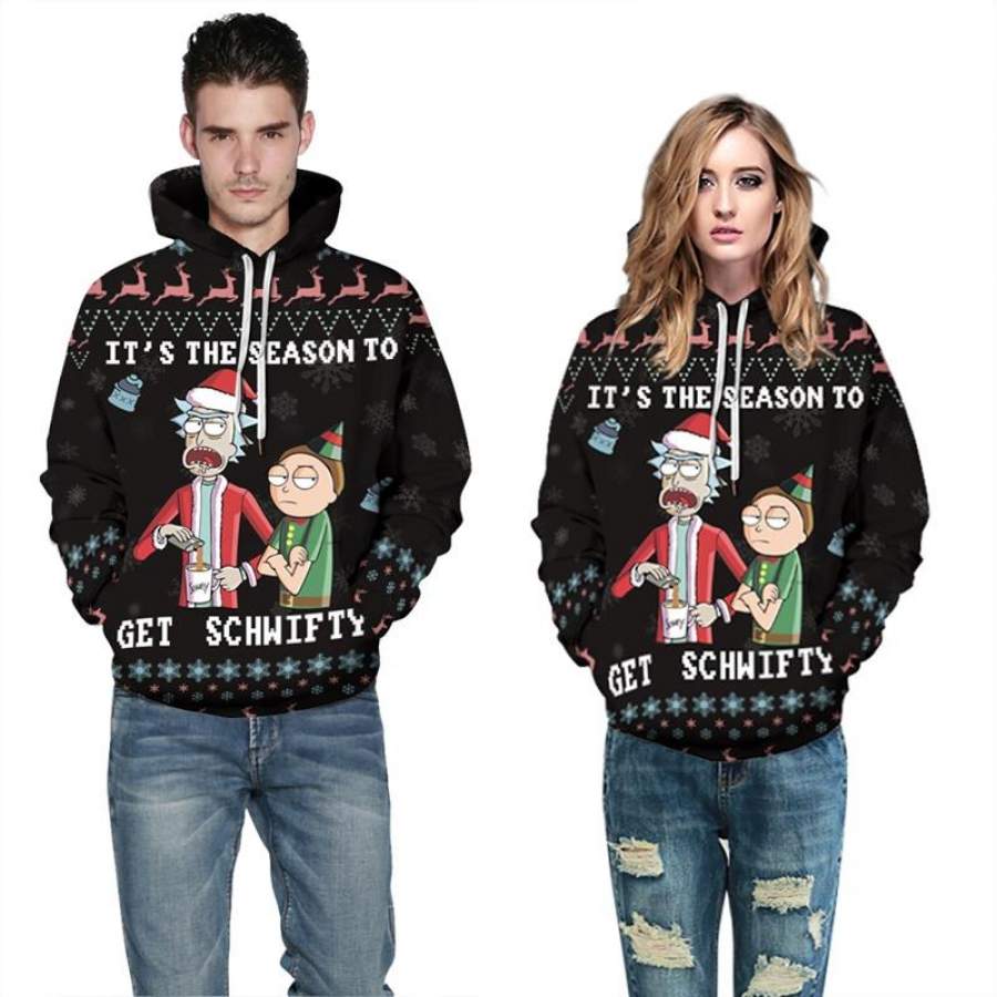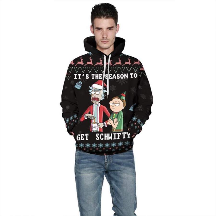 Mens Hoodies 3D Graphic Printed Merry Christmas Black Pullover