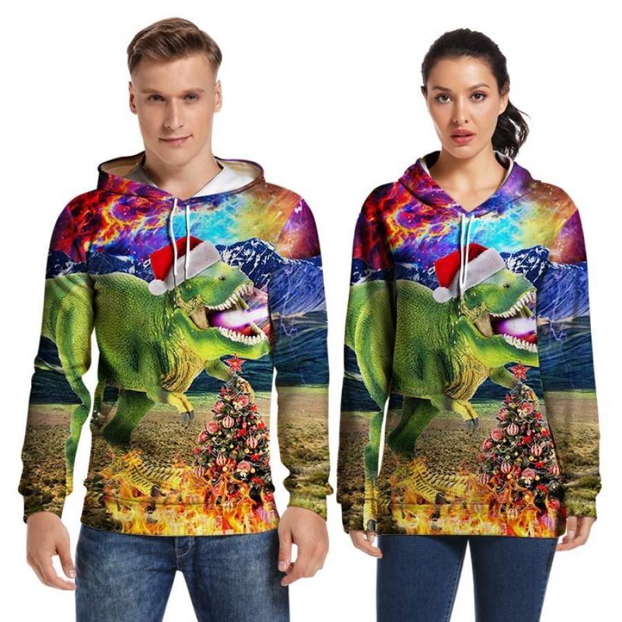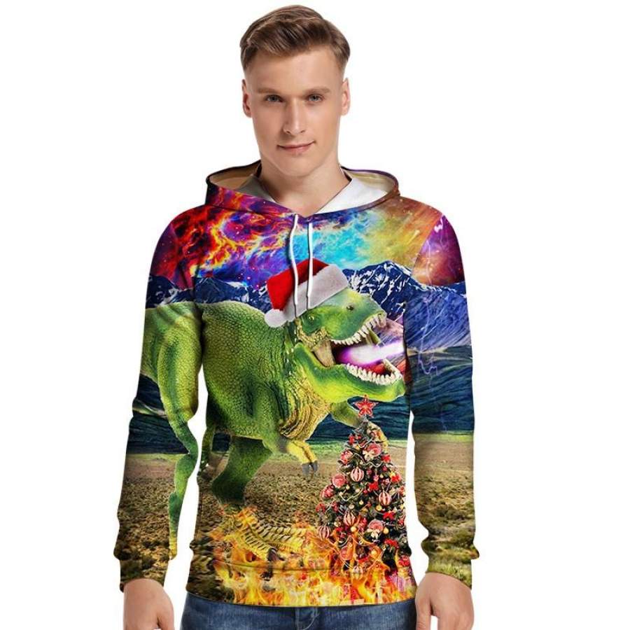 Mens Hoodies 3D Graphic Printed Merry Christmas Dinosaur Colorful Pullover Hoodie
