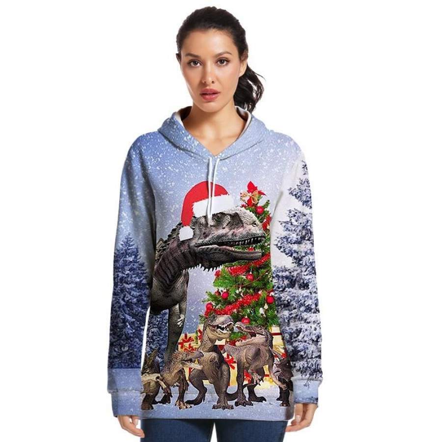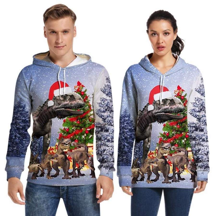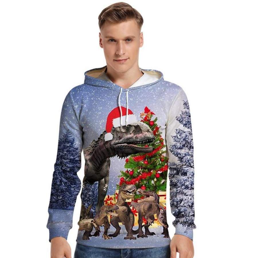 Mens Hoodies 3D Graphic Printed Merry Christmas Dinosaur Pullover Hoodie