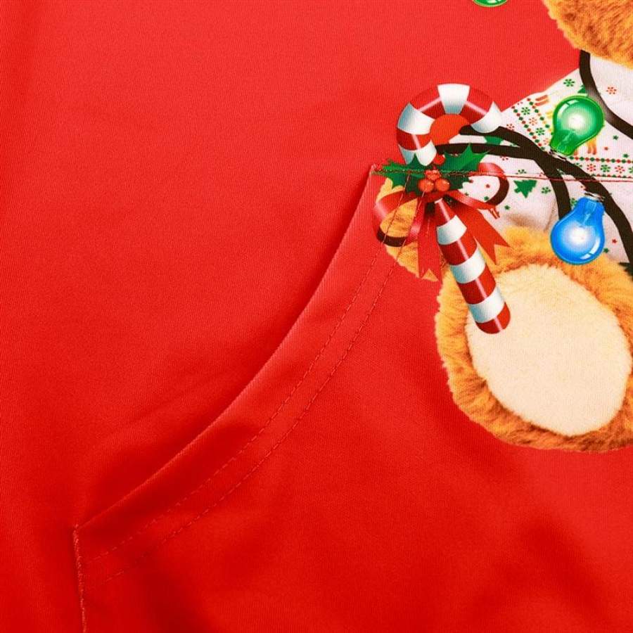 Mens Red Hoodies 3D Graphic Printed Merry Christmas Glowing Bear Pullover