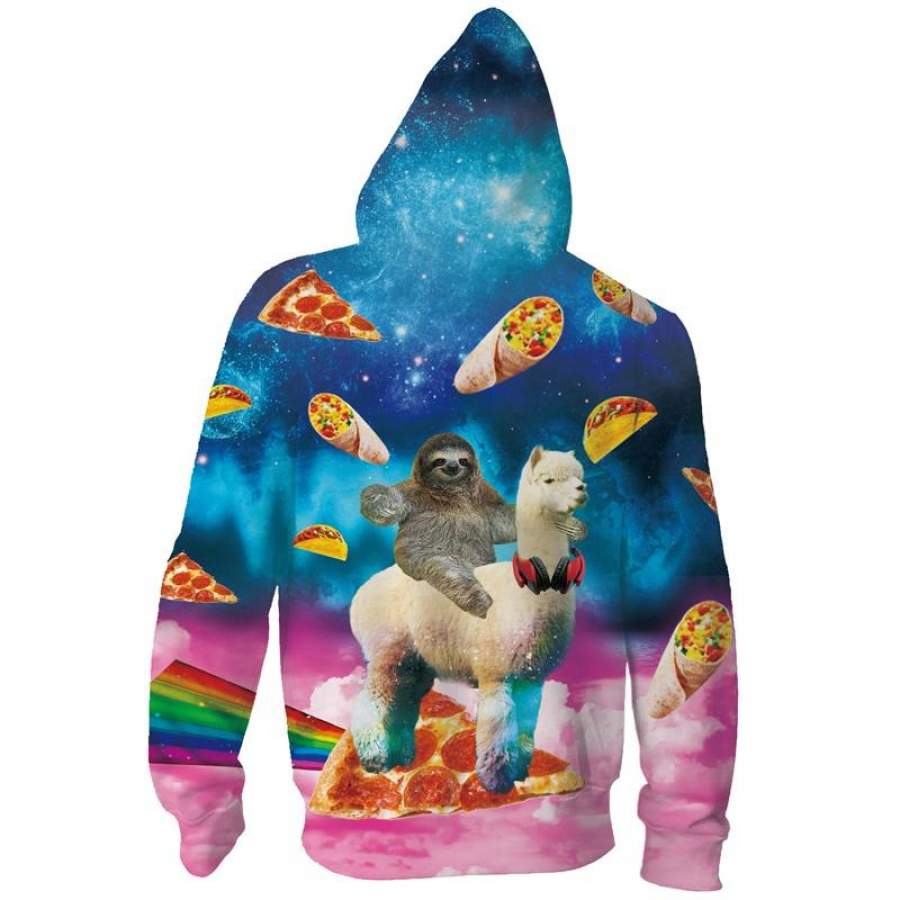 Mens Zip Up Hoodies Christmas Alpaca 3D Graphic Printing Hoody
