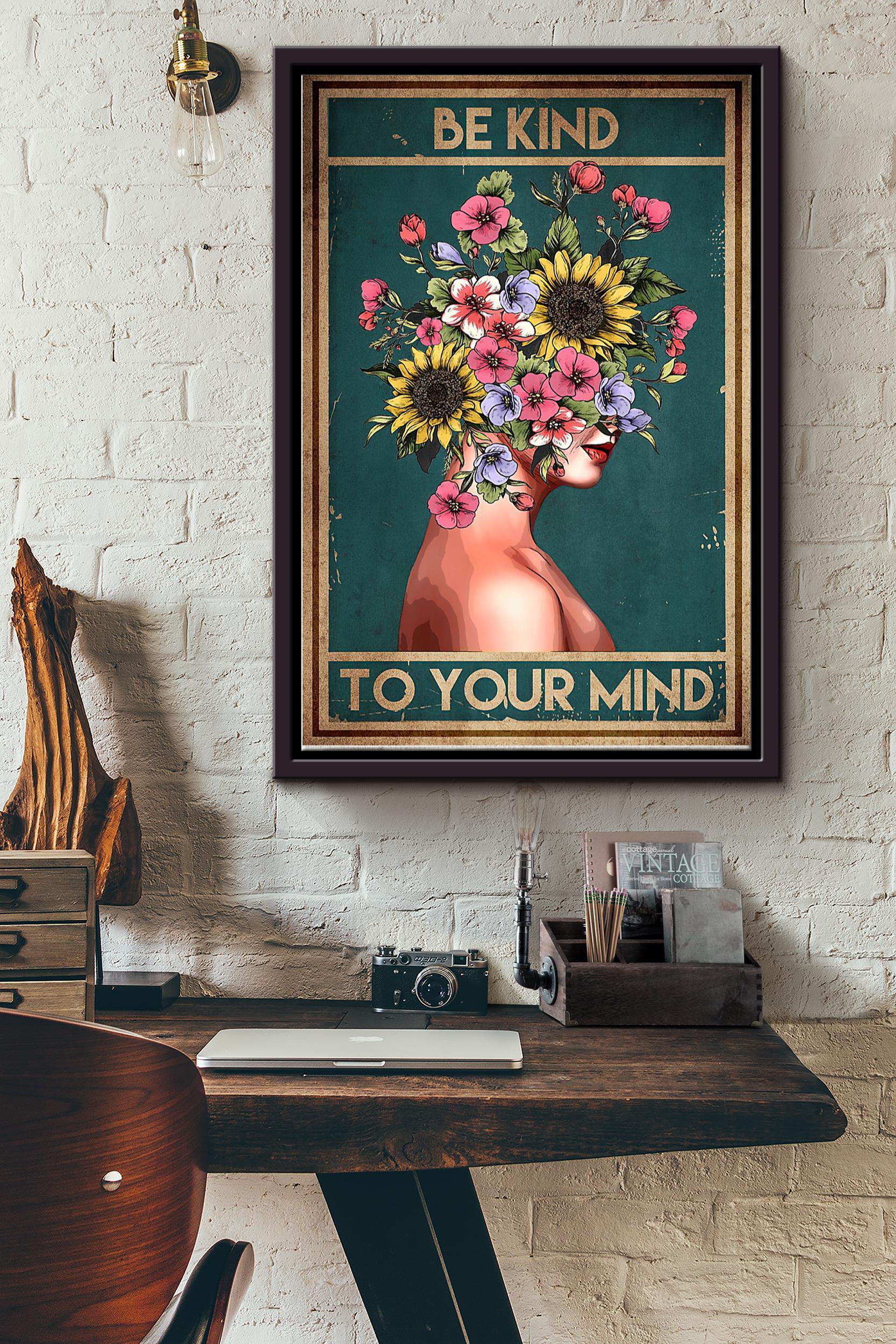 Mental Health Flower Girl Be Kind Poster Framed Matte Canvas