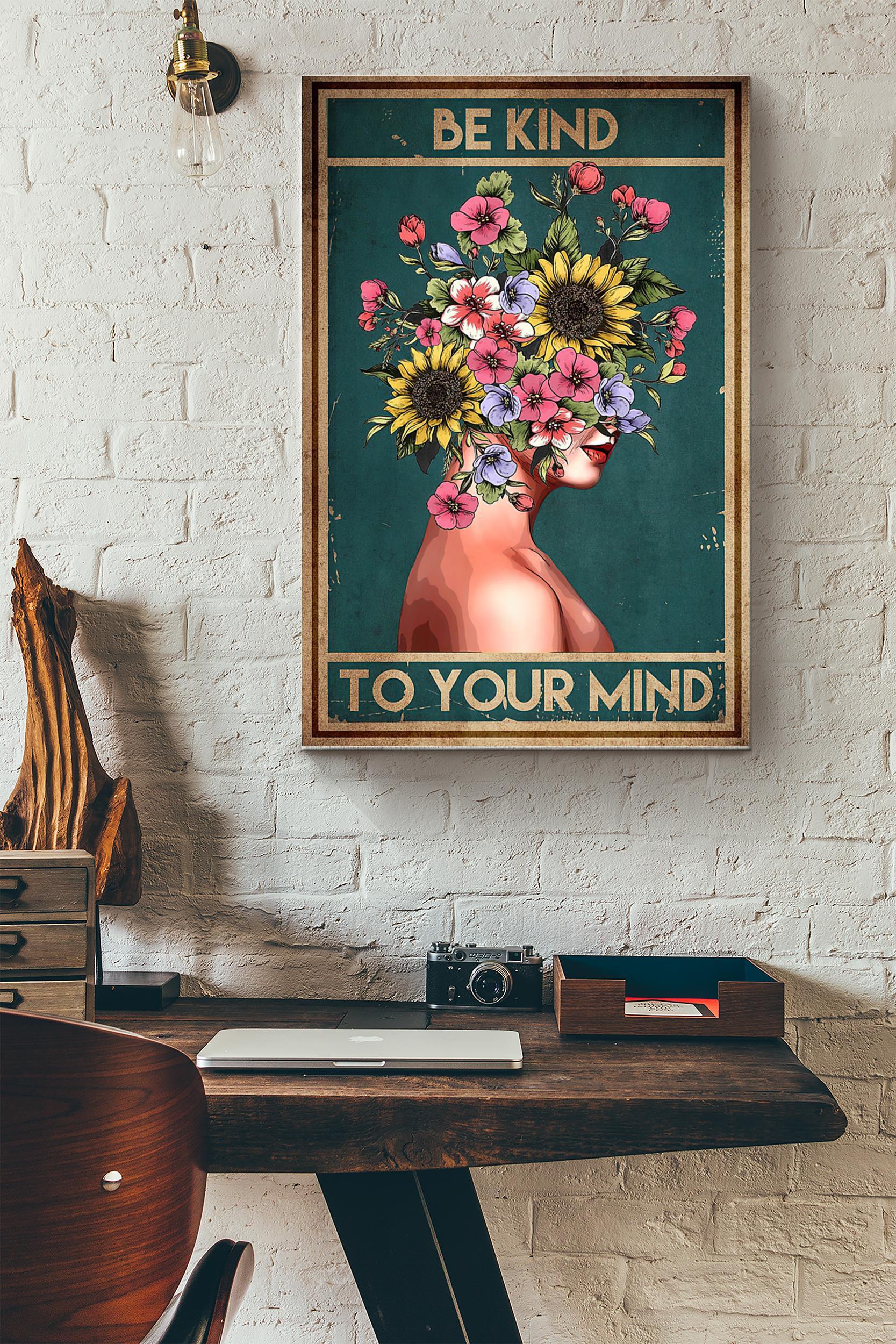 Mental Health Flower Girl Be Kind Poster Wrapped Canvas