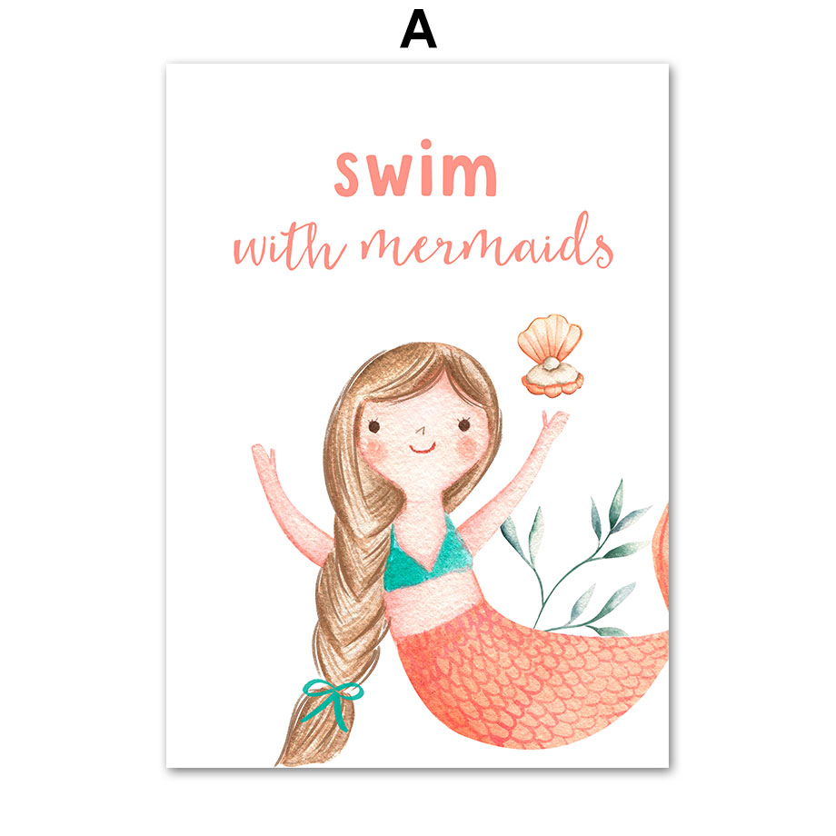 Mermaid Fairy Unicorn Moon Rainbow Stars Flower Wall Art Canvas Painting Nordic Poster Print Pictures For Girl Kids Room Decor alx