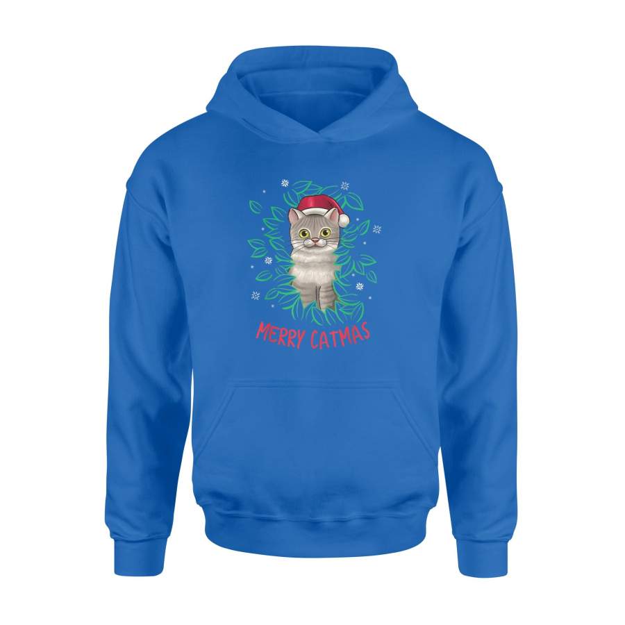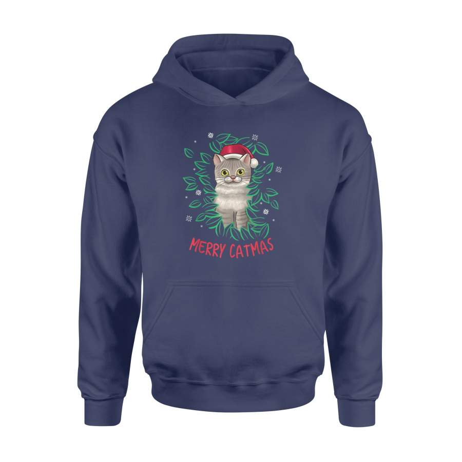 Merry Catmas Christmas Cat Santa Hat Cute Cat Lover Gift T-Shirt – Standard Hoodie