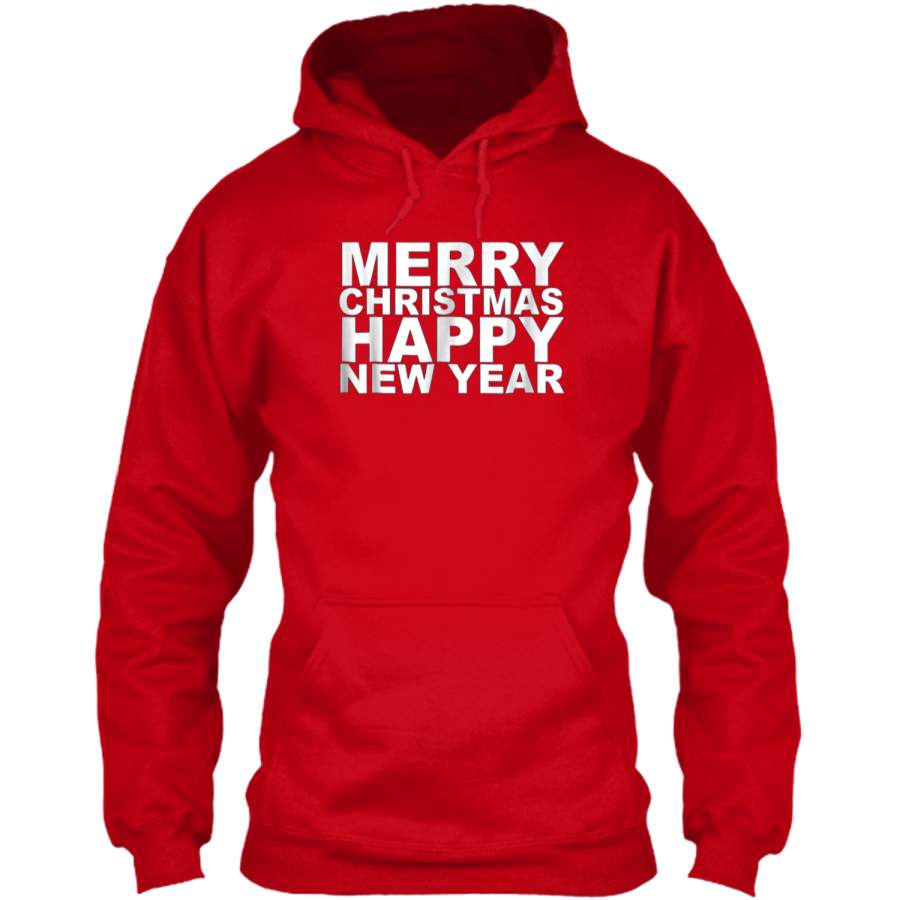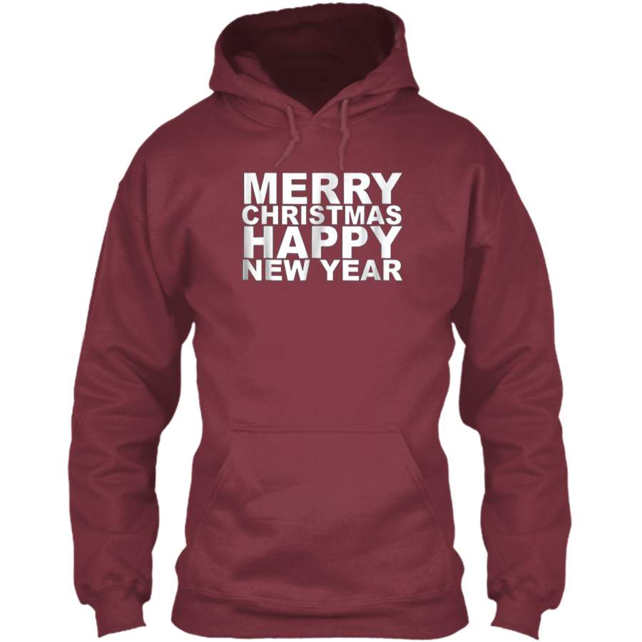 Merry Christmas Happy New Year Pullover Hoodie 8 oz