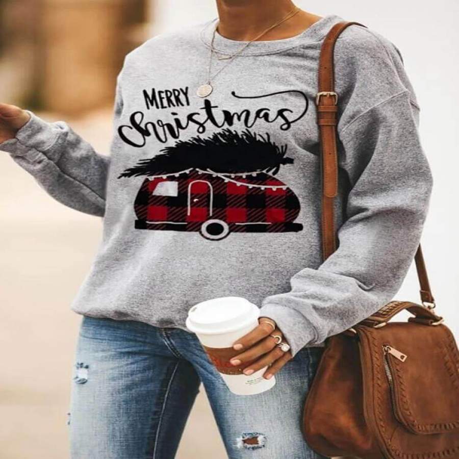 Merry Christmas Plaid Splicing Sweatshirt Letter Print Pullover Hoodies Blouse Tops