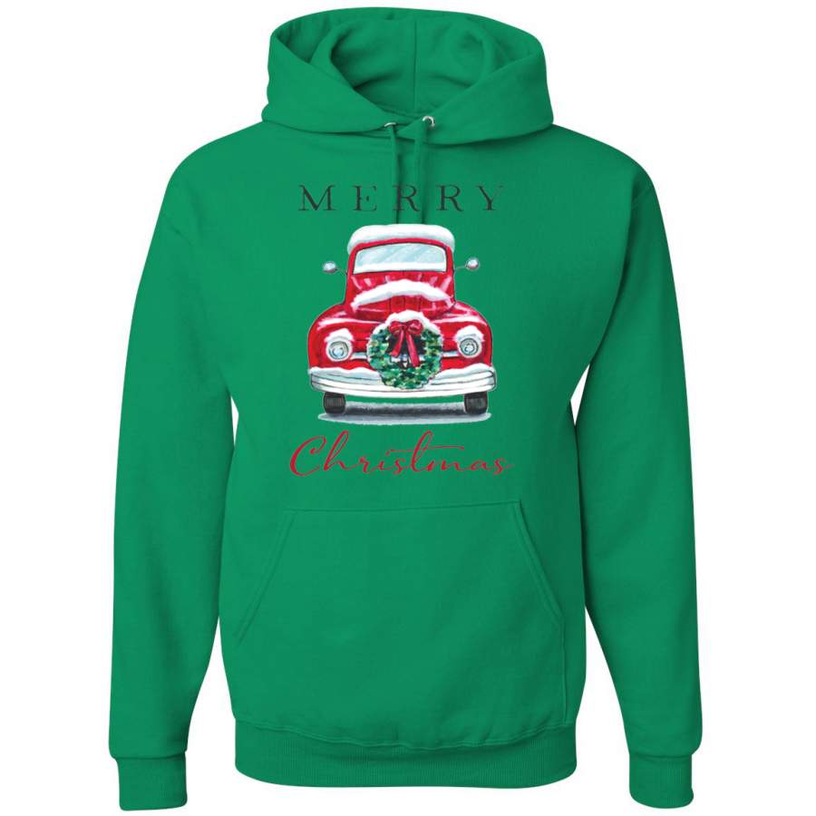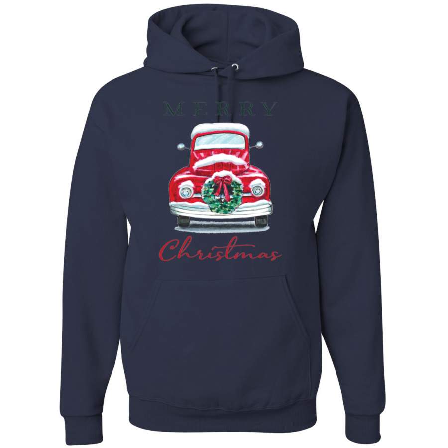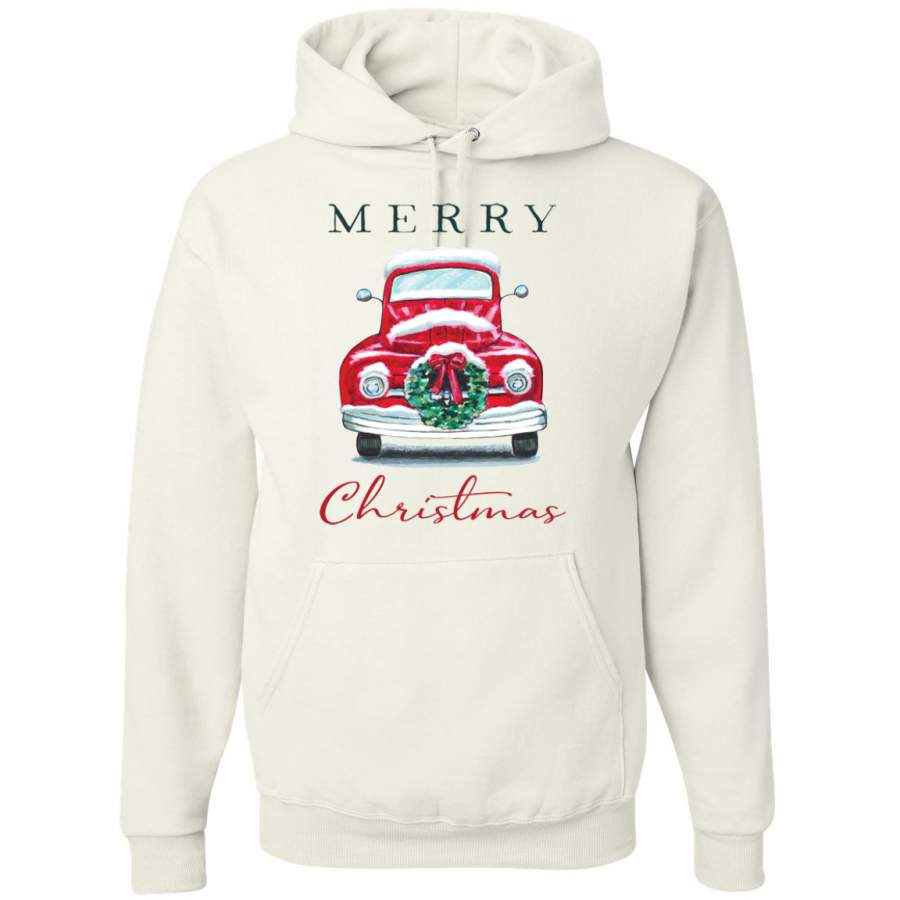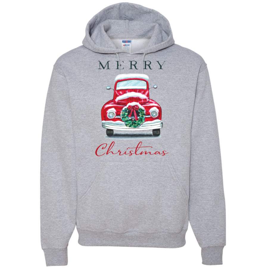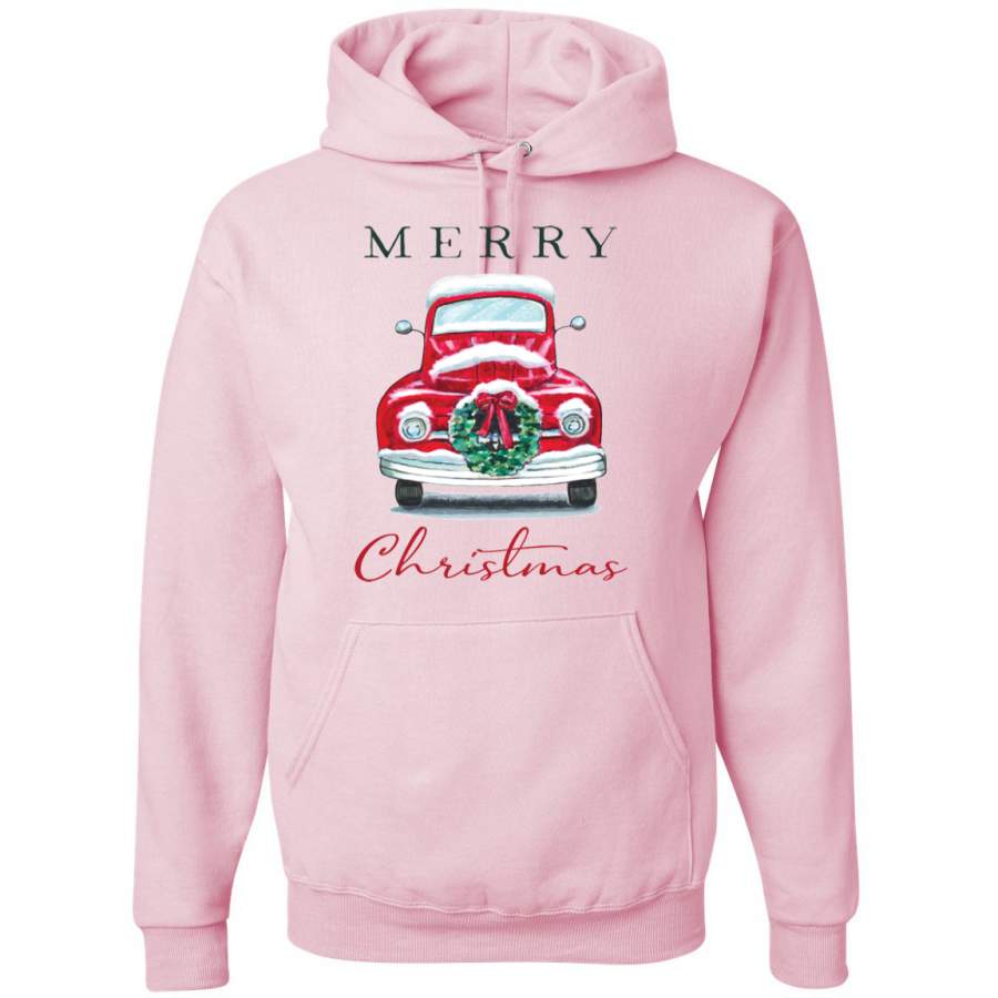 Merry Christmas Red Car with Xmas Garland Christmas Unisex Graphic Hoodie Sweatshirt