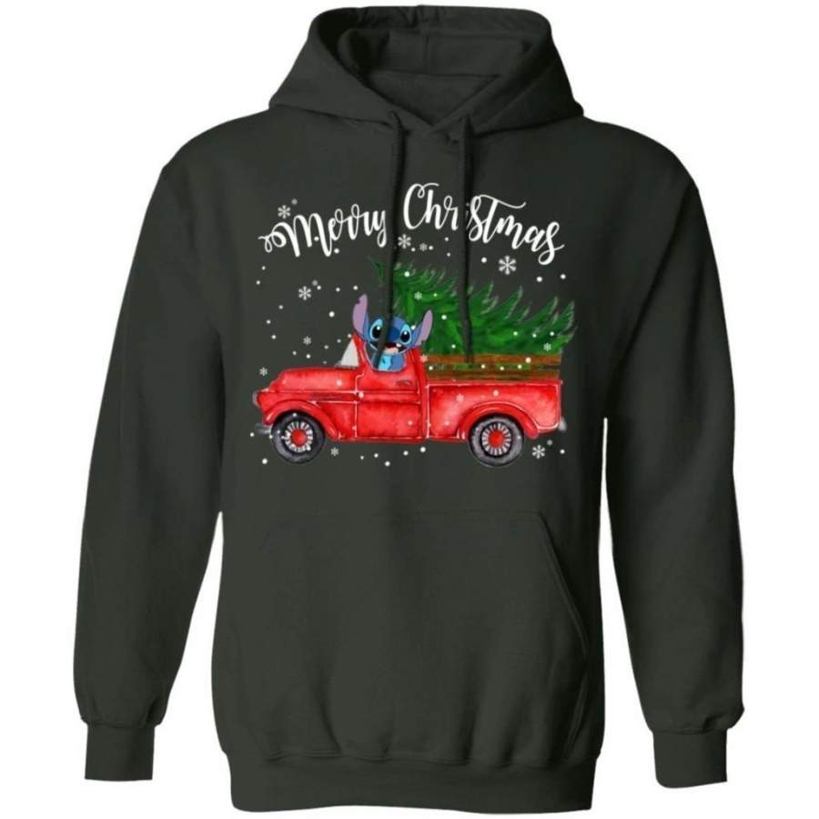 Merry Christmas Stitch On The Red Truck Christmas Hoodie Cute Gift VA10