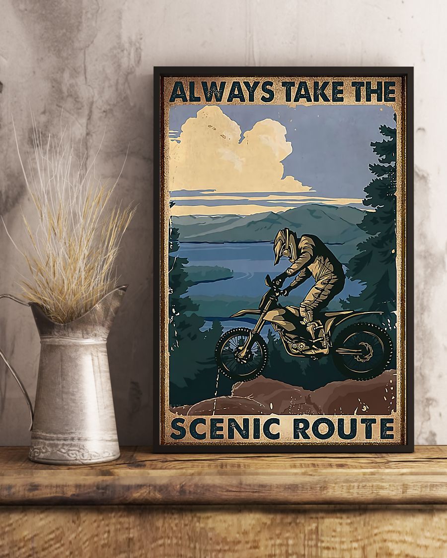 Motorcycle – Always Take The Scenic Route Vertical Canvas And Poster | Wall Decor Visual Art