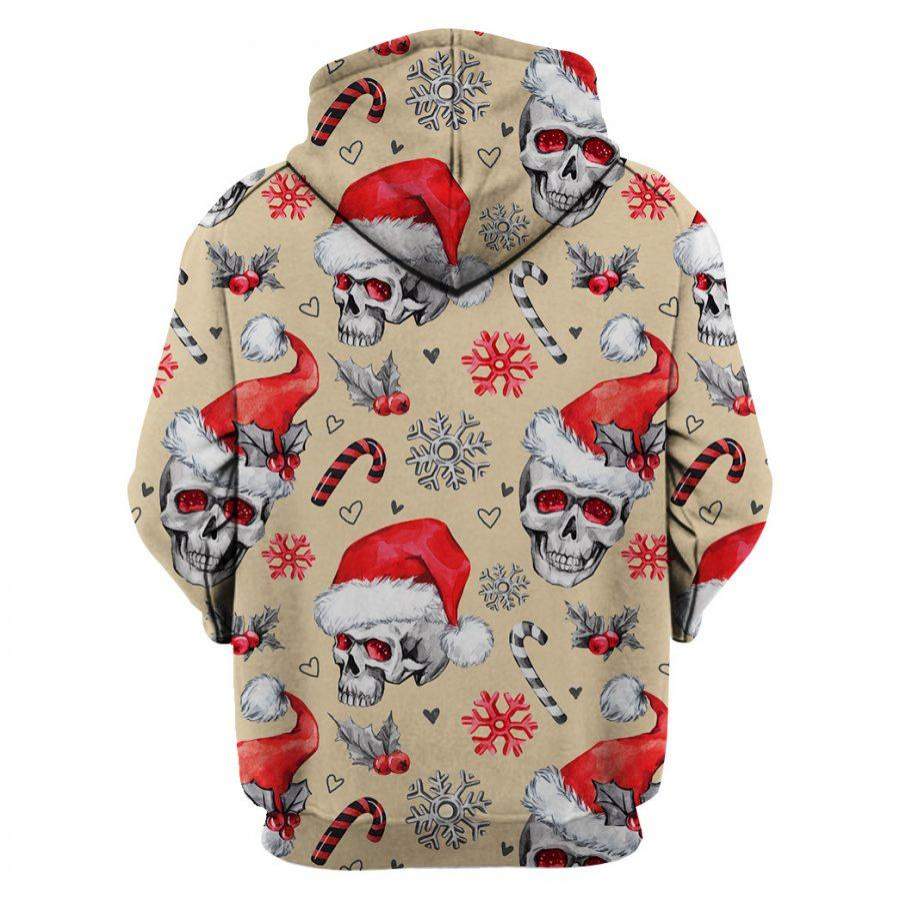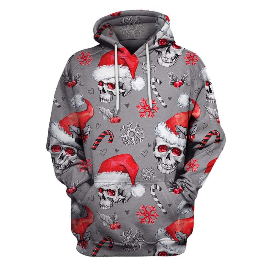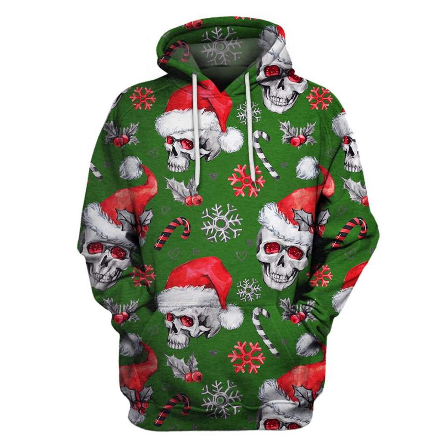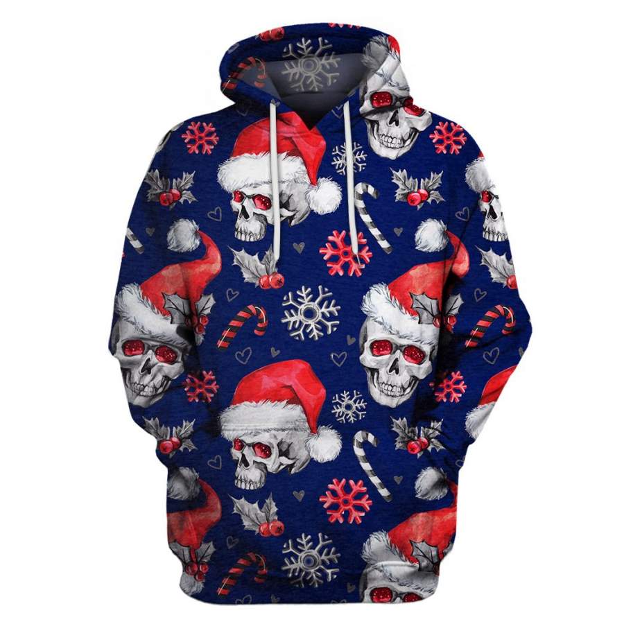 Multi-Color Christmas Skull US Unisex Size Pullover Hoodie
