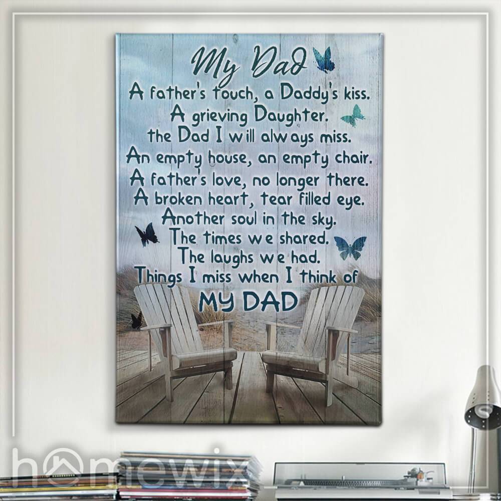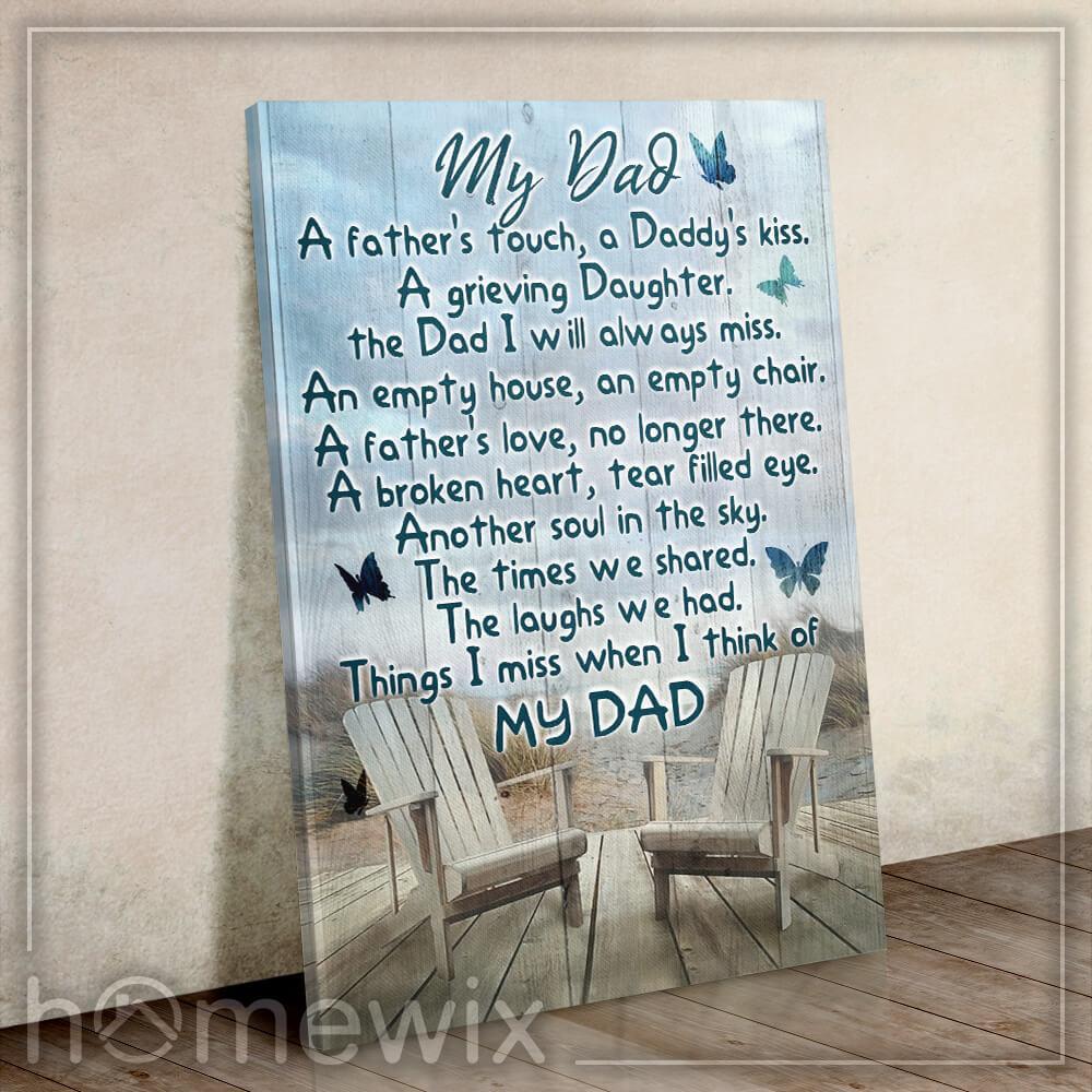 My Dad A Fathers Touch, A Daddys Kiss, A Grieving Daughter Canvas And Poster Wall Art | Wall Decor