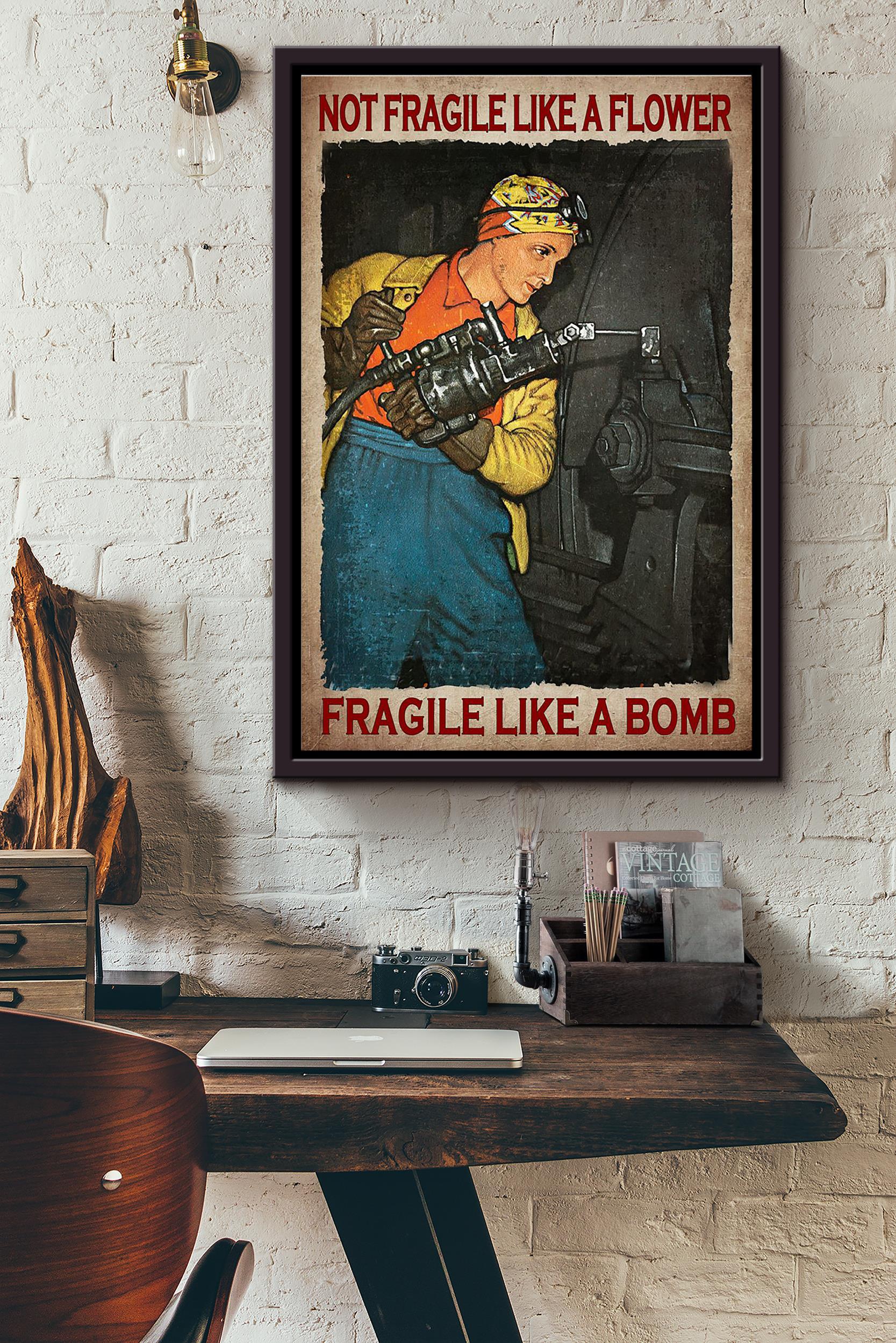 Not Fragile Like A Flower Fragile Like A Bomb Female Engineer Poster Framed Matte Canvas