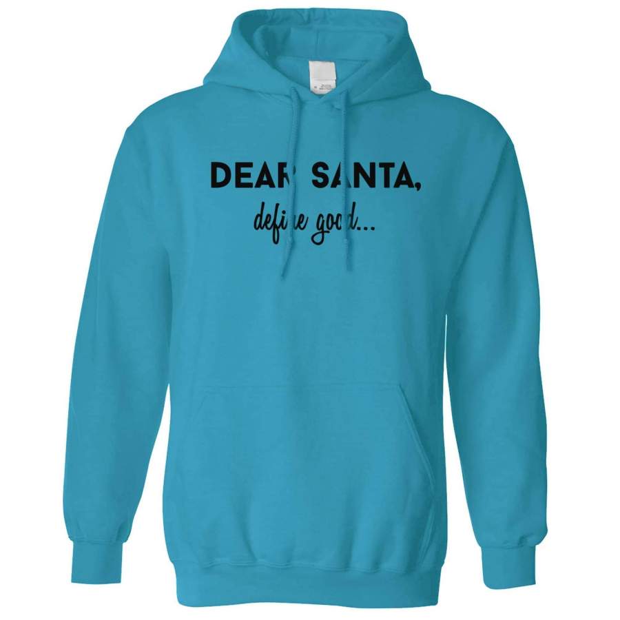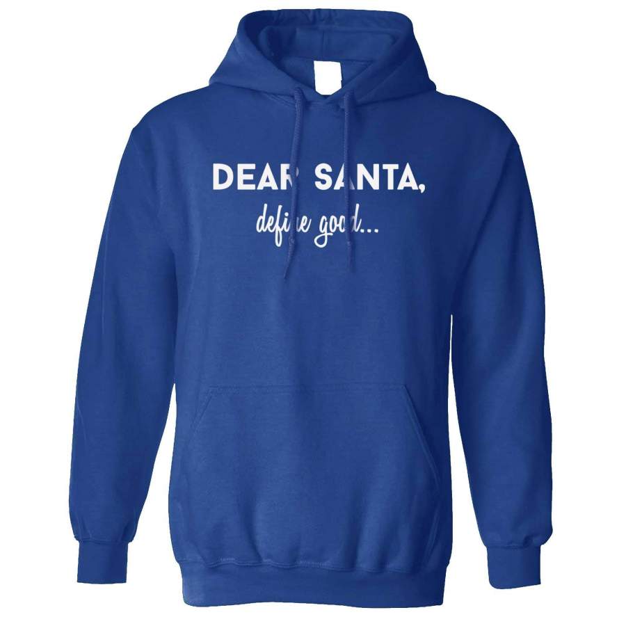 Novelty Christmas Hoodie Dear Santa, Define Good… Hooded Jumper