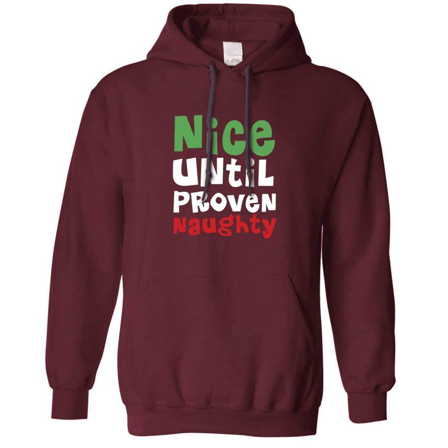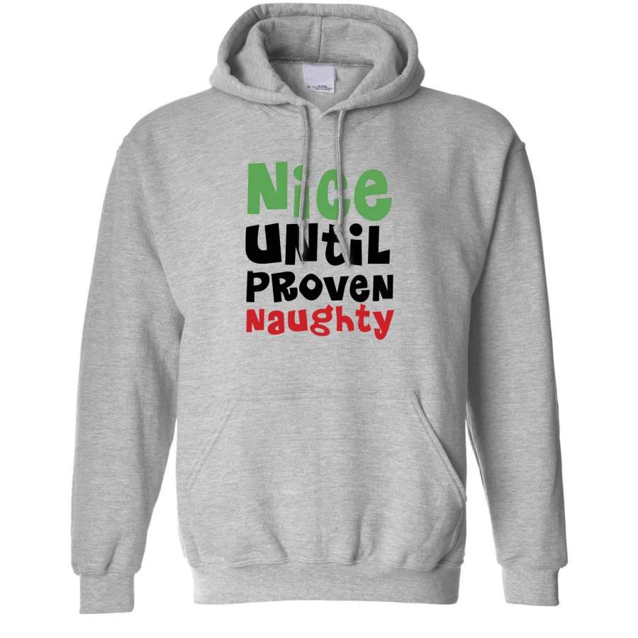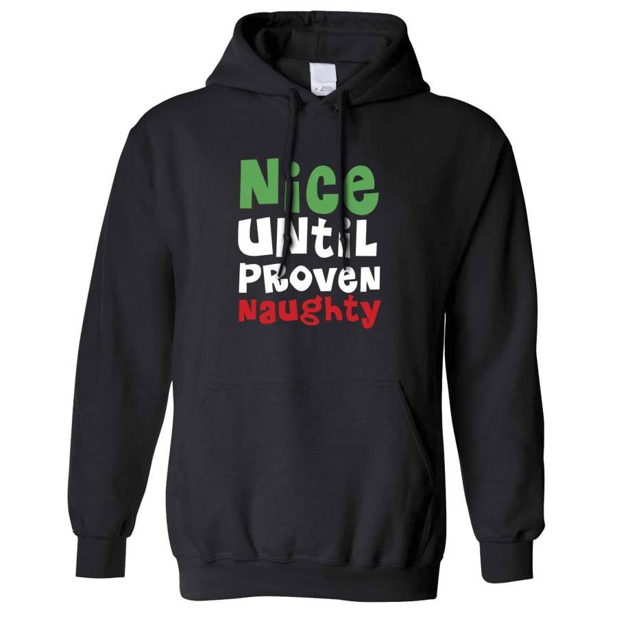Novelty Christmas Hoodie Nice Until Proven Naughty Hooded Jumper