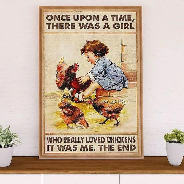 Once Upon A Time There Was A Girl Who Really Loved Chickens Portrait Poster & Canvas Gift For Animal Lovers Wall Decor Wall Art Visual Art
