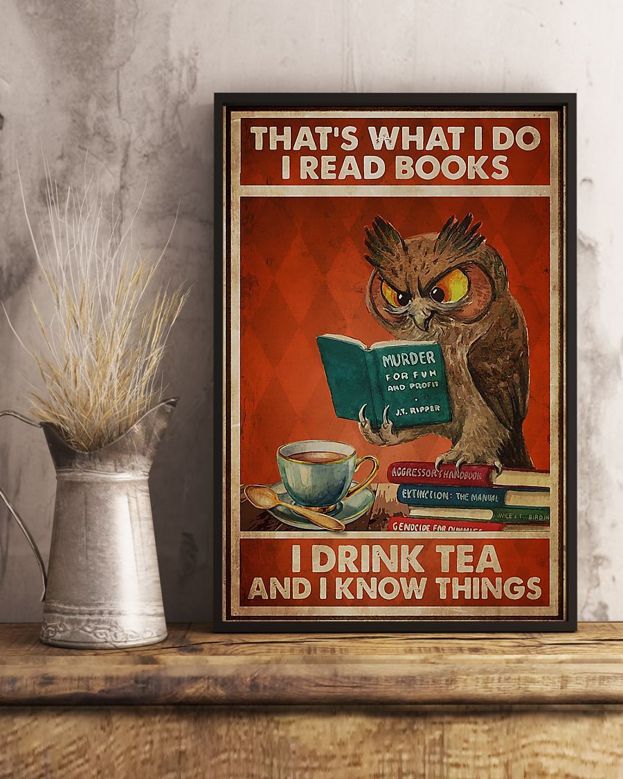 Owl I Read Books I Drink Tea And I Know Things Vertical Canvas And Poster | Wall Decor Visual Art