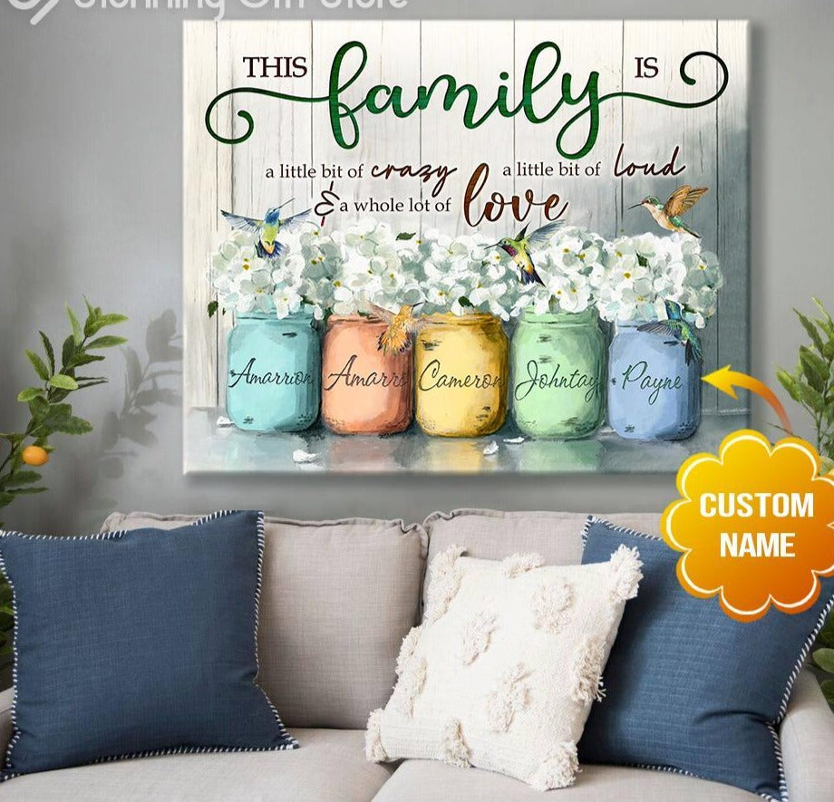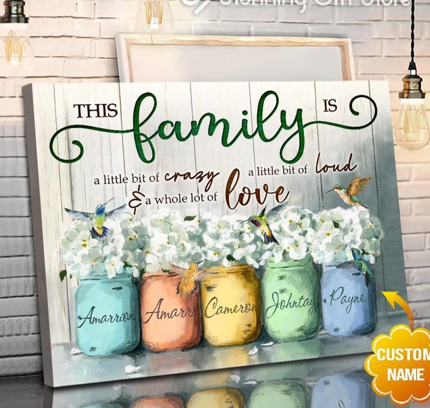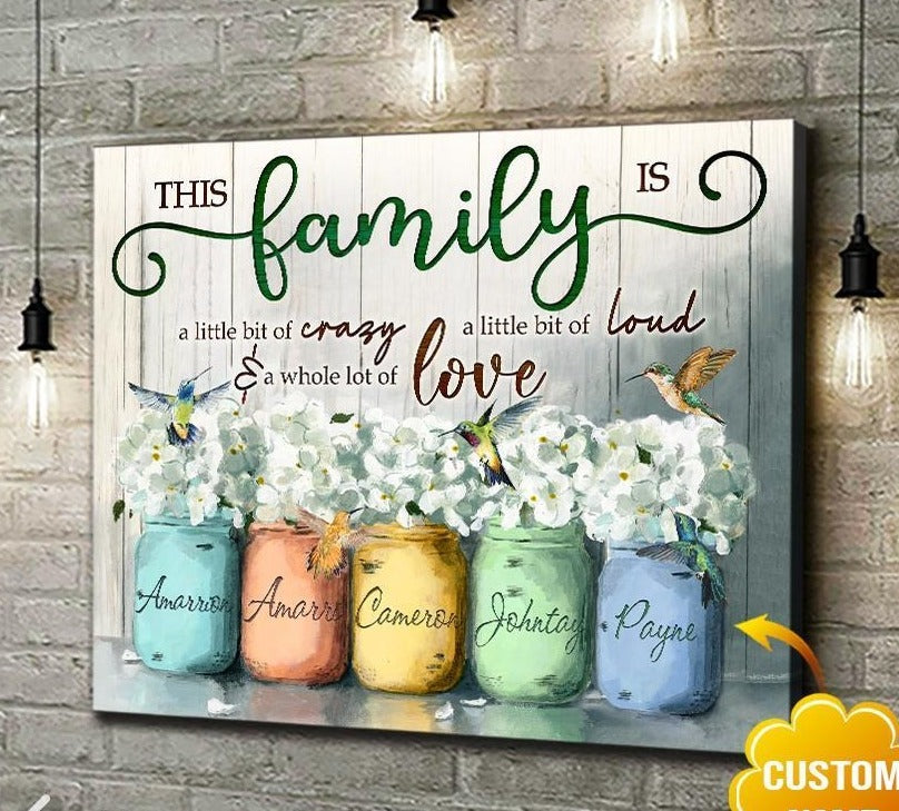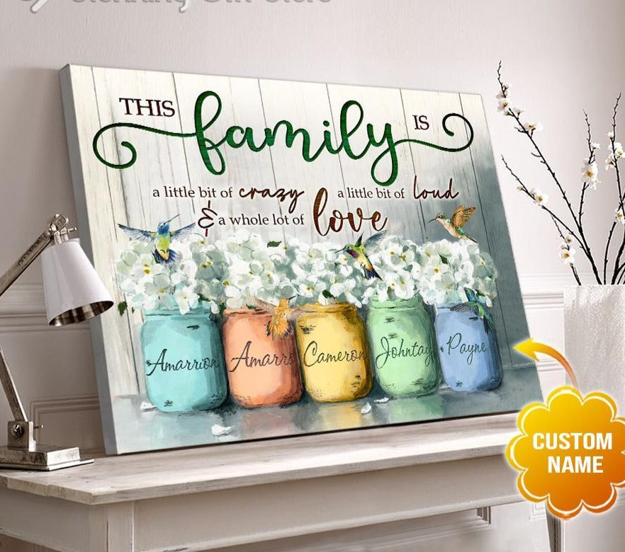 Personalized Name Text Flower Multi- s Canvas, Poster Wall Art Family Is A Little Bit Of Crazy