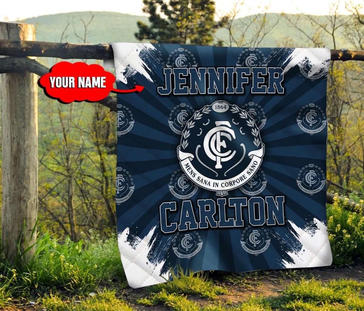 Personalized THAQT55 Carlton Football Club Quilt Blanket Name