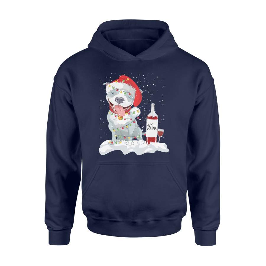 Pitbull Christmas Lights Gift Wine Lover Shirt` – Standard Hoodie