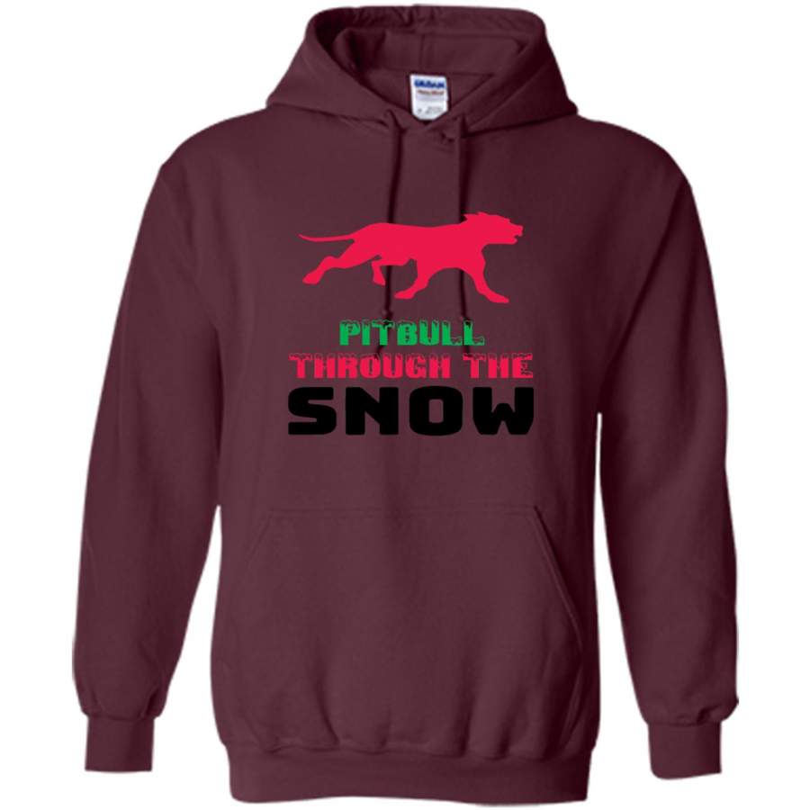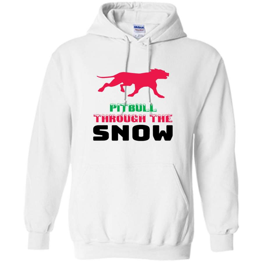 Pitbull Through The Snow, Christmas Gift – Gildan Heavy Blend Hoodie