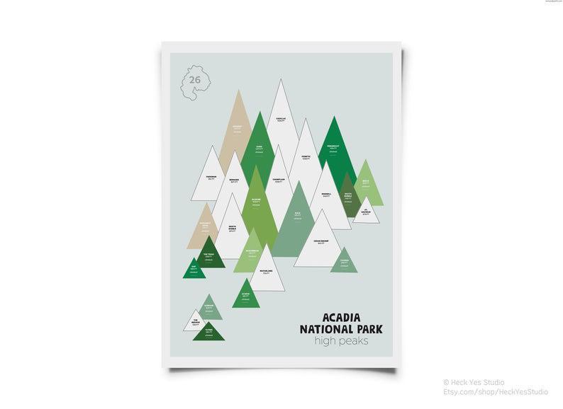 Poster Canvas Acadia National Park High Peaks Sticker Map | Maine Mountains | Mountain Art, Hiking Poster Wall Decor, Poster Gift Decor Home Decor Wall Art Visual Art