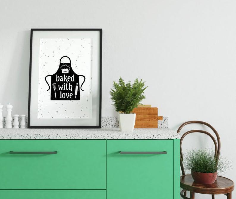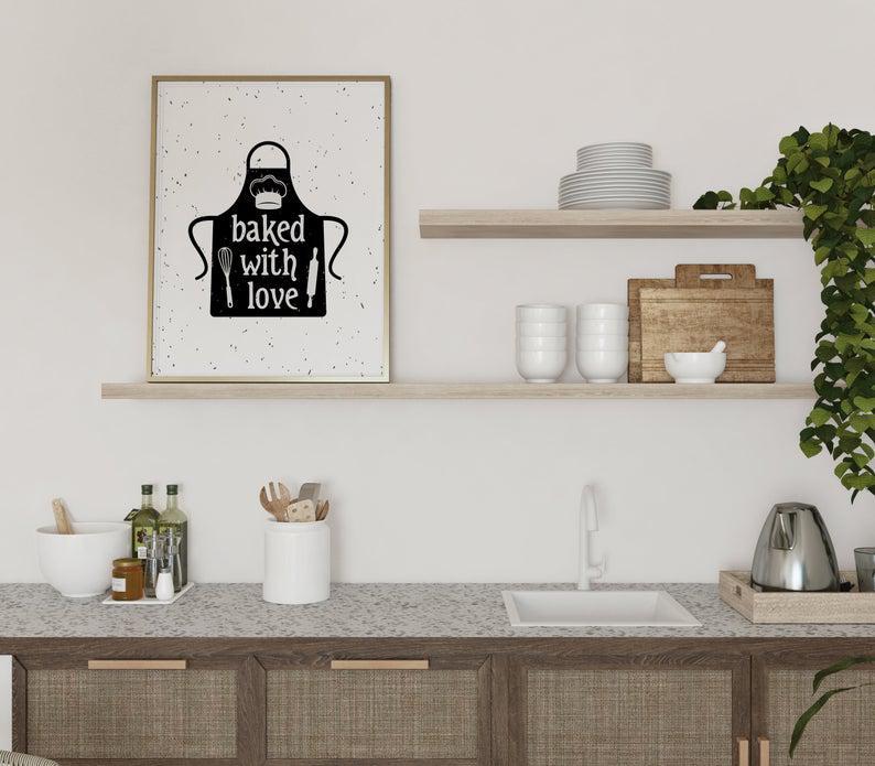 Poster Canvas Baked With Love Kitchen Print, Cooking Print, Baking Poster,Gift For Cake Lovers, Baker Poster Wall Decor, Poster Gift Decor Home Decor Wall Art Visual Art