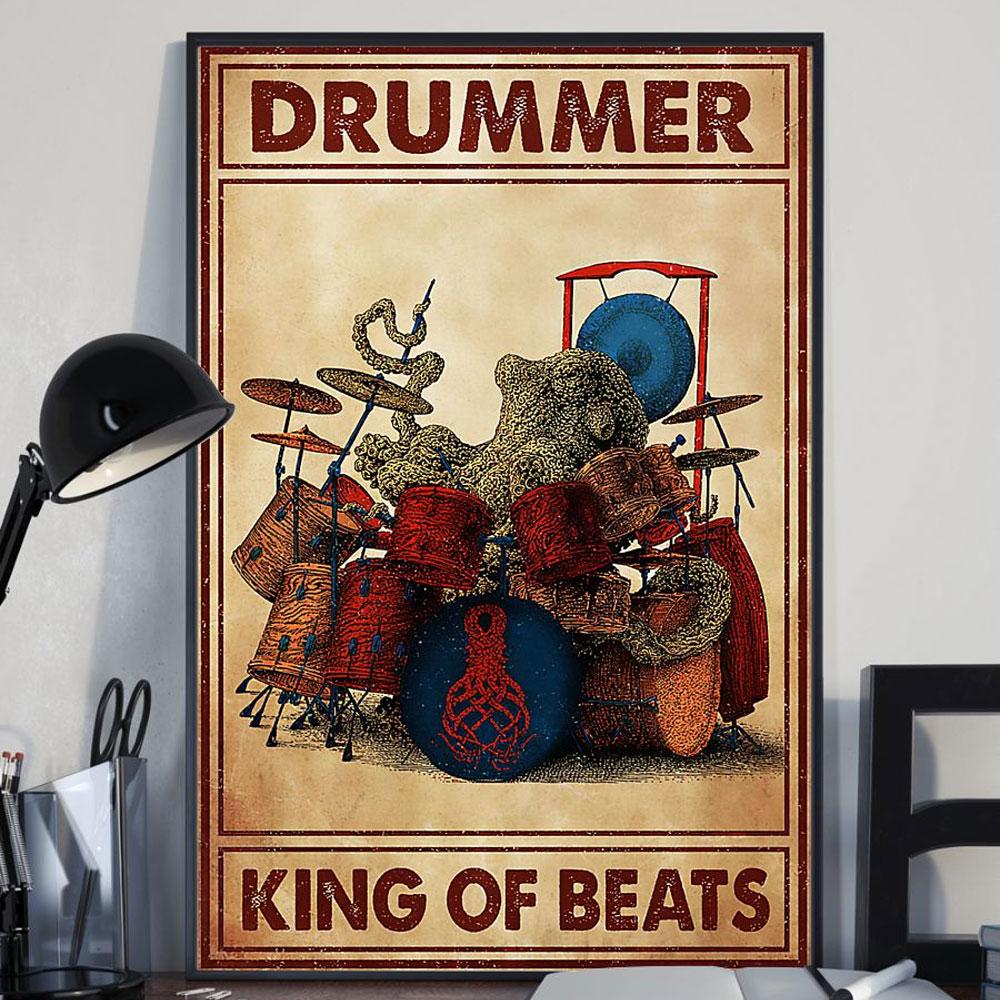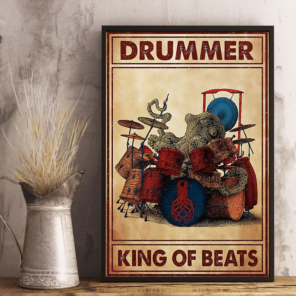 Poster Canvas Drummer King Of Beats Octopus Playing Drum Poster Gift Decor Home Decor Wall Art Visual Art