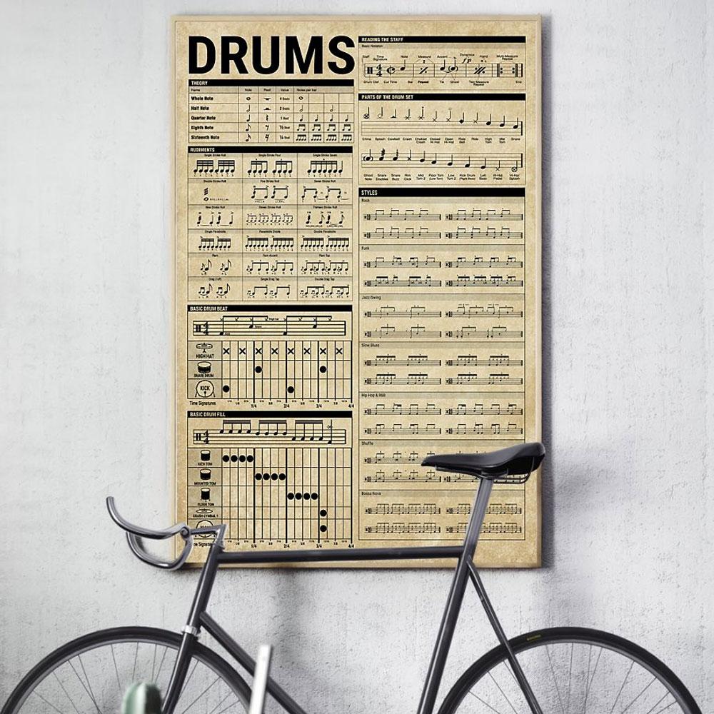 Poster Canvas Drums Knowledge Chart Drummer Gift Poster Gift Decor Home Decor Wall Art Visual Art