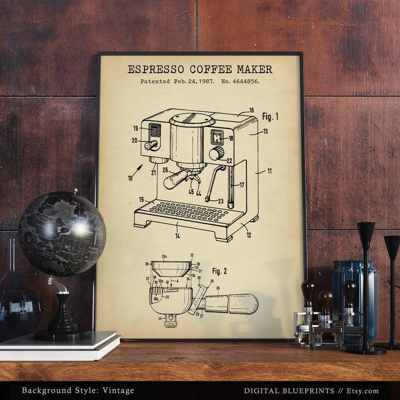 Poster Canvas Espresso Coffee Maker Patent Print, Digital Download Blueprint Art, Kitchen Wall Art, Coffee Poster Wall Decor, Poster Gift Decor Home Decor Wall Art Visual Art