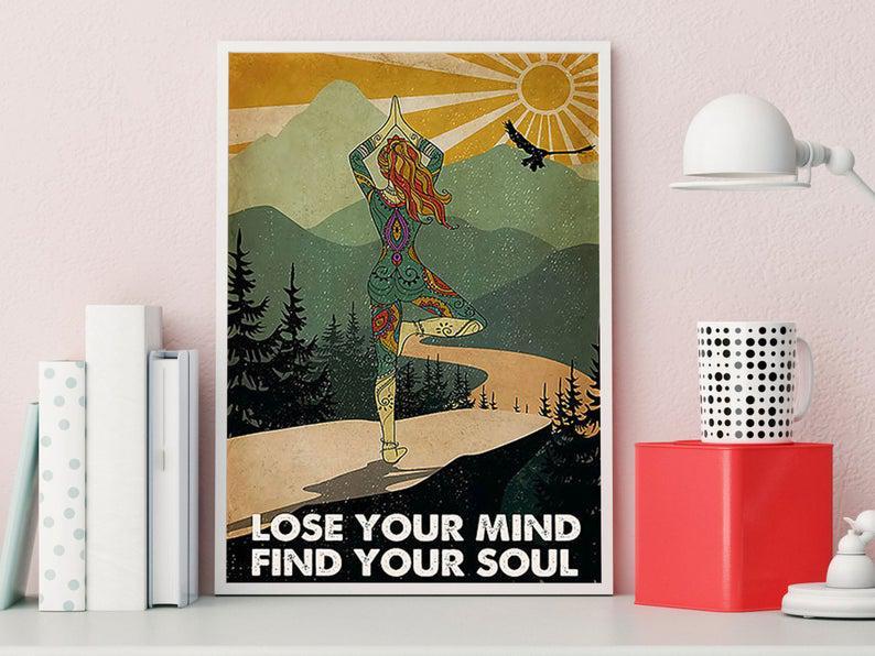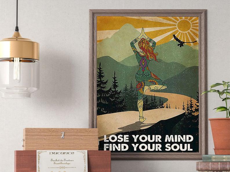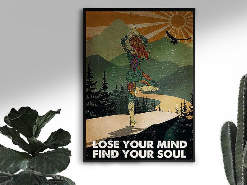 Poster Canvas Lose Your Mind Find Your Soul, Gift For Yoga Lovers, Yoga Poster Wall Decor, Poster Gift Decor Home Decor Wall Art Visual Art