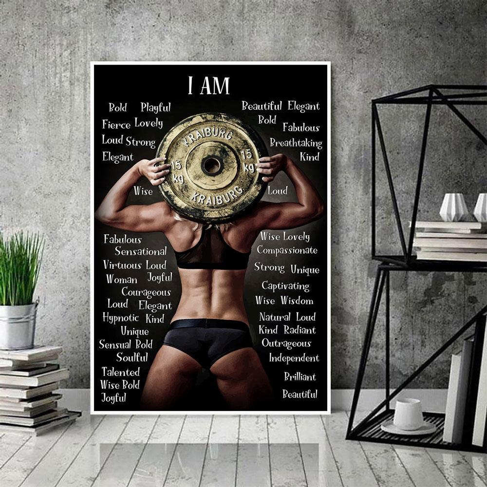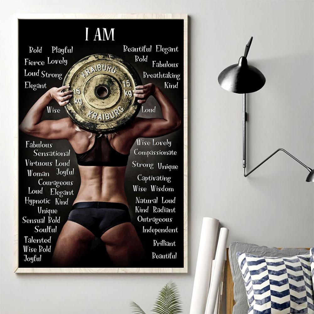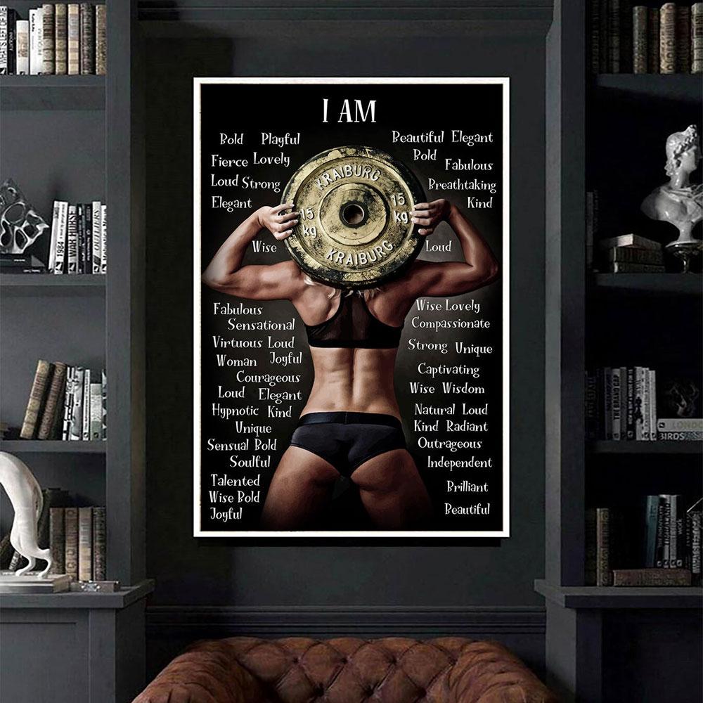 Poster Canvas Woman Weightlifting I Am Strong Bold Beautiful Kind Poster, Fitness, Gym Lovers Poster, Bodybuilding Poster Wall Decor, Poster Gift Decor Home Decor Wall Art Visual Art