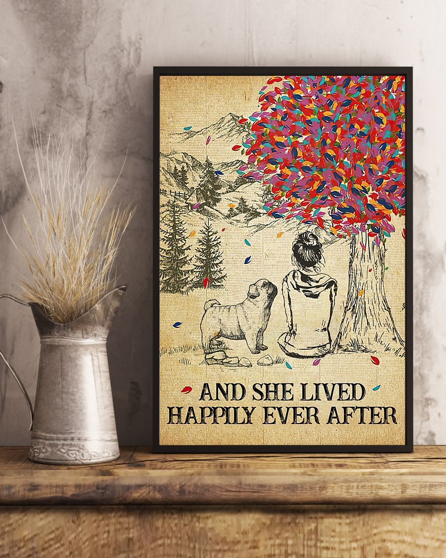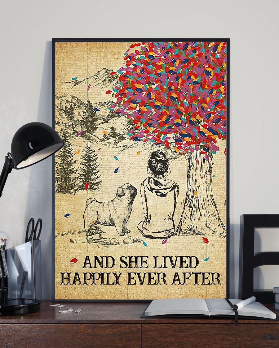 Pug And She Lived Happily Ever After Portrait Poster & Canvas Gift For Pug Lovers Gift For Dog Lovers Home Decor Wall Art Visual Art