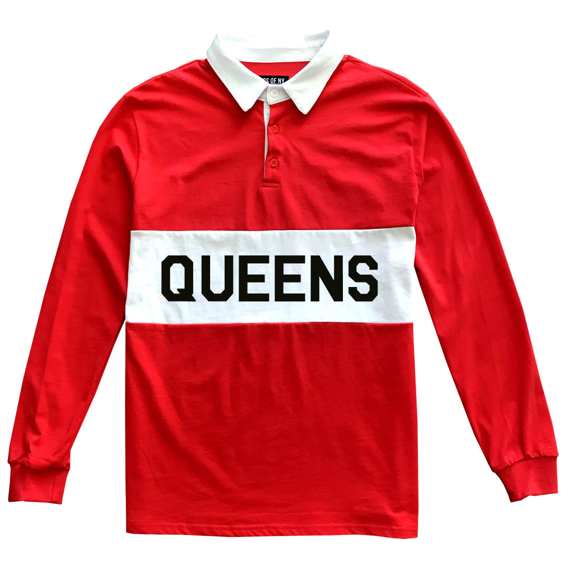 Queens New York Striped Mens Long Sleeve Rugby Shirt