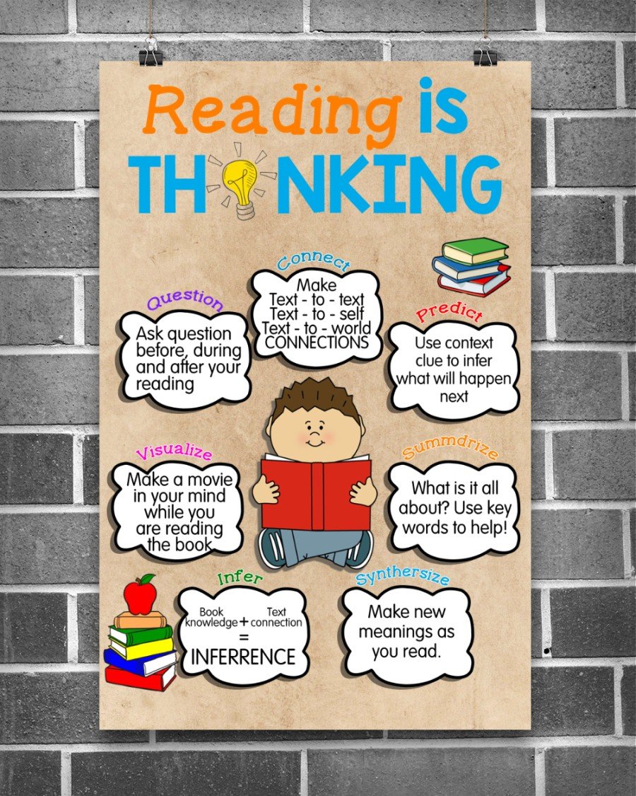 Reading Is Thinking Portrait Canvas & Poster Growth Mindset, Motivational Wall Art, School Office Classroom Teacher Decoration Art Wall Art