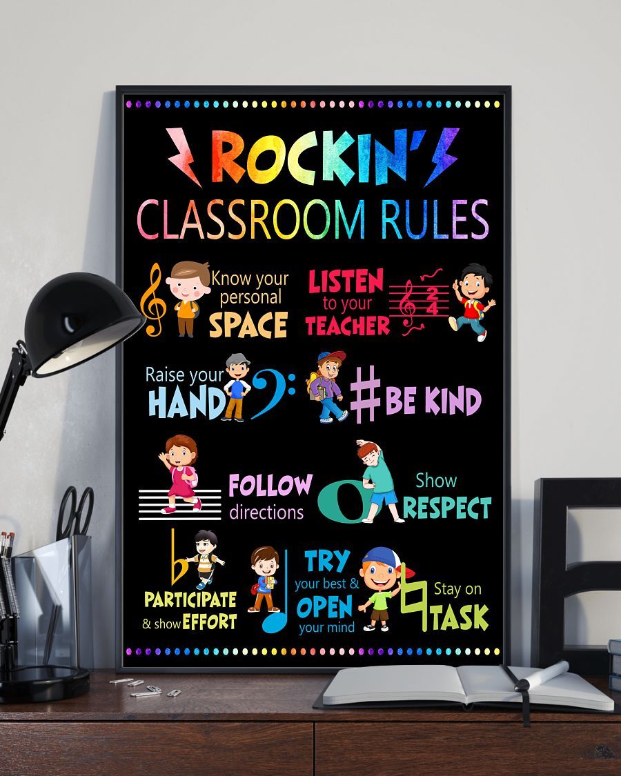 Rockin Classroom Rules Portrait Canvas & Poster Growth Mindset, Motivational Wall Art, School Office Classroom Teacher Decoration Art Wall Art