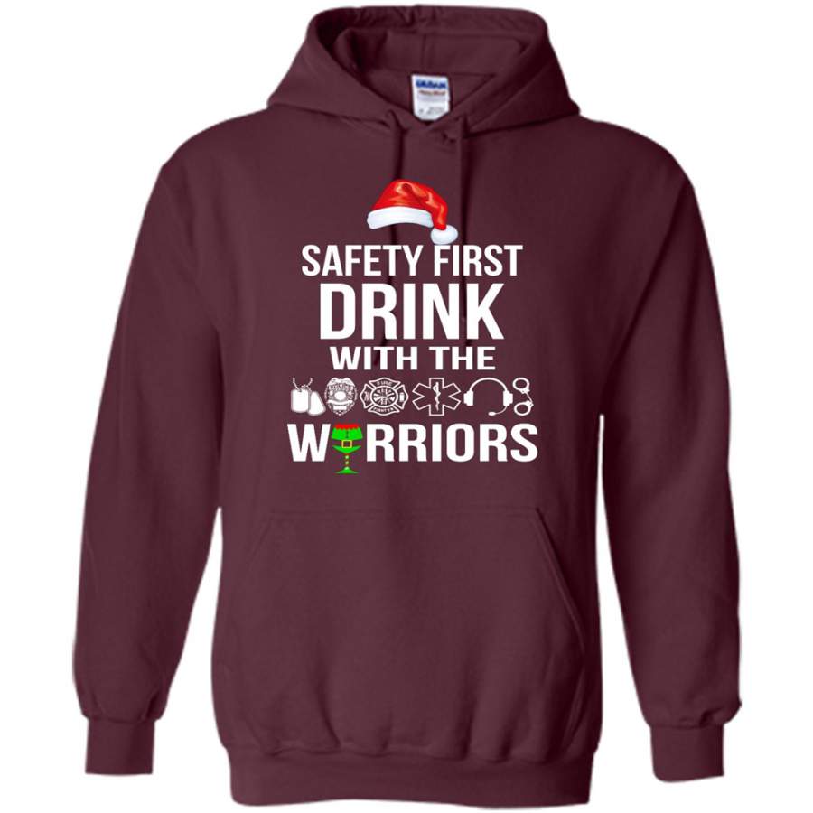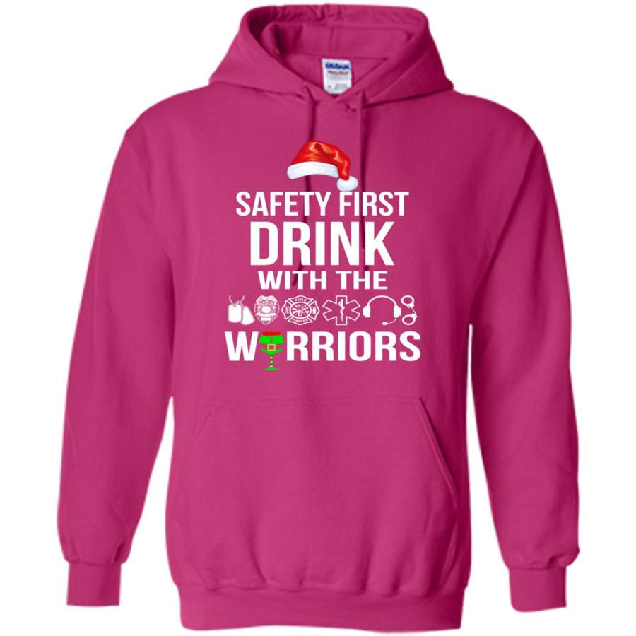Safety First Drink With The Warriors, Police sign, Nurse Sign, Veterans, Christmas Gift – Gildan Heavy Blend Hoodie