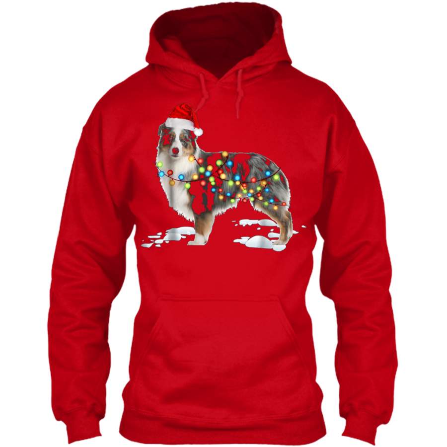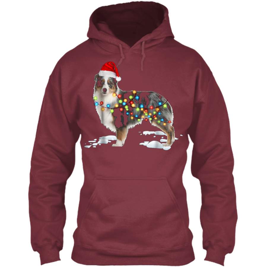 Santa Australian Shepherd Christmas Lights Xmas Gift Pullover Hoodie 8 oz