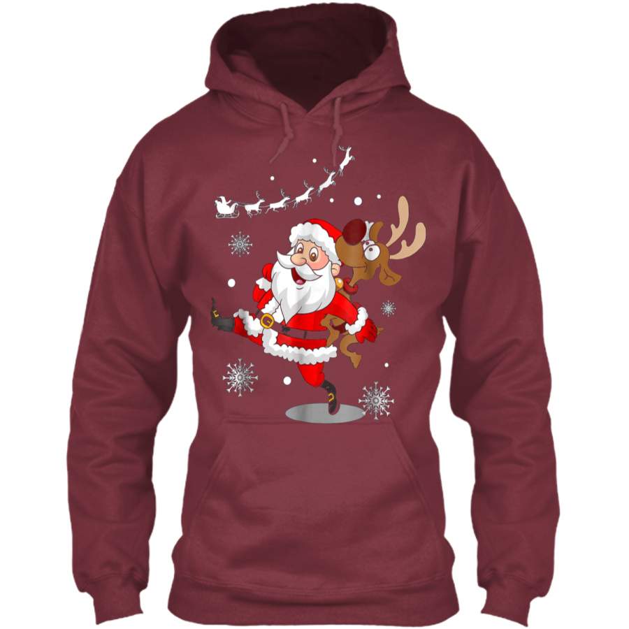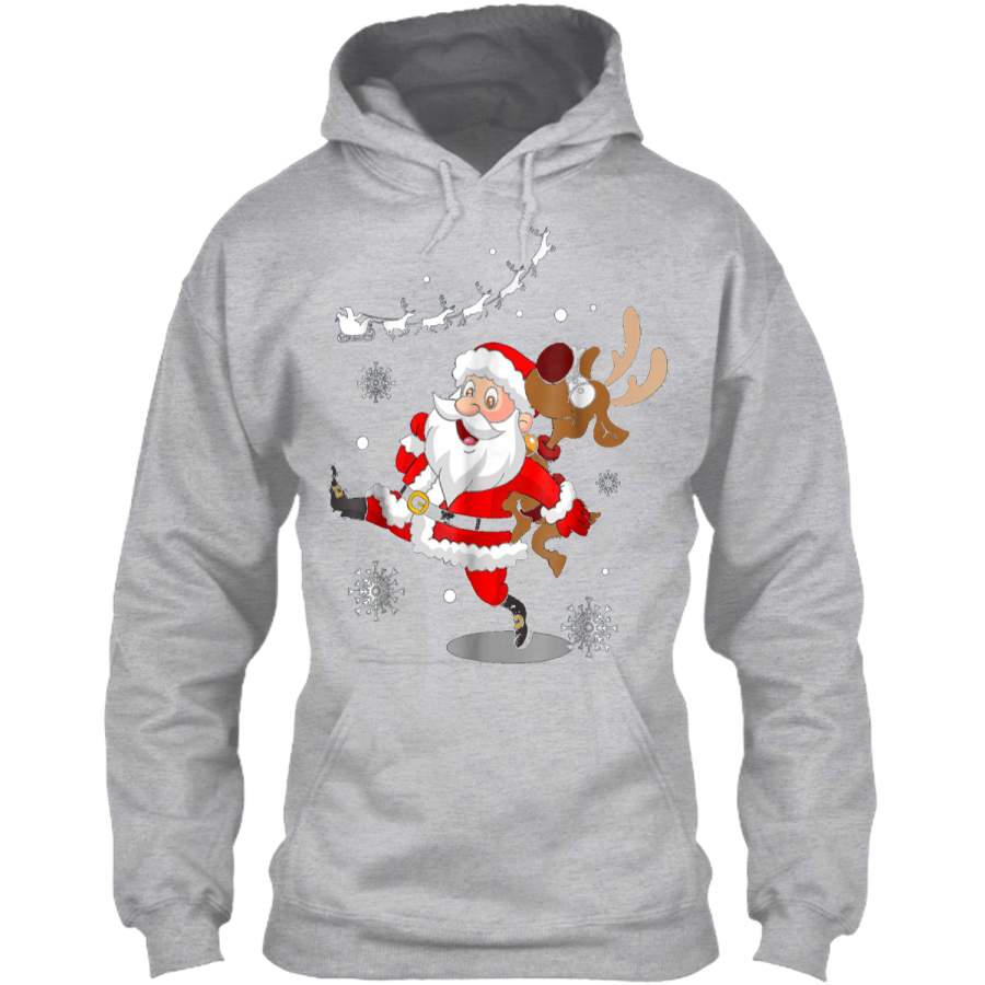 Santa Claus Carrying A Reindeer Christmas Tee Gift Pullover Hoodie 8 oz