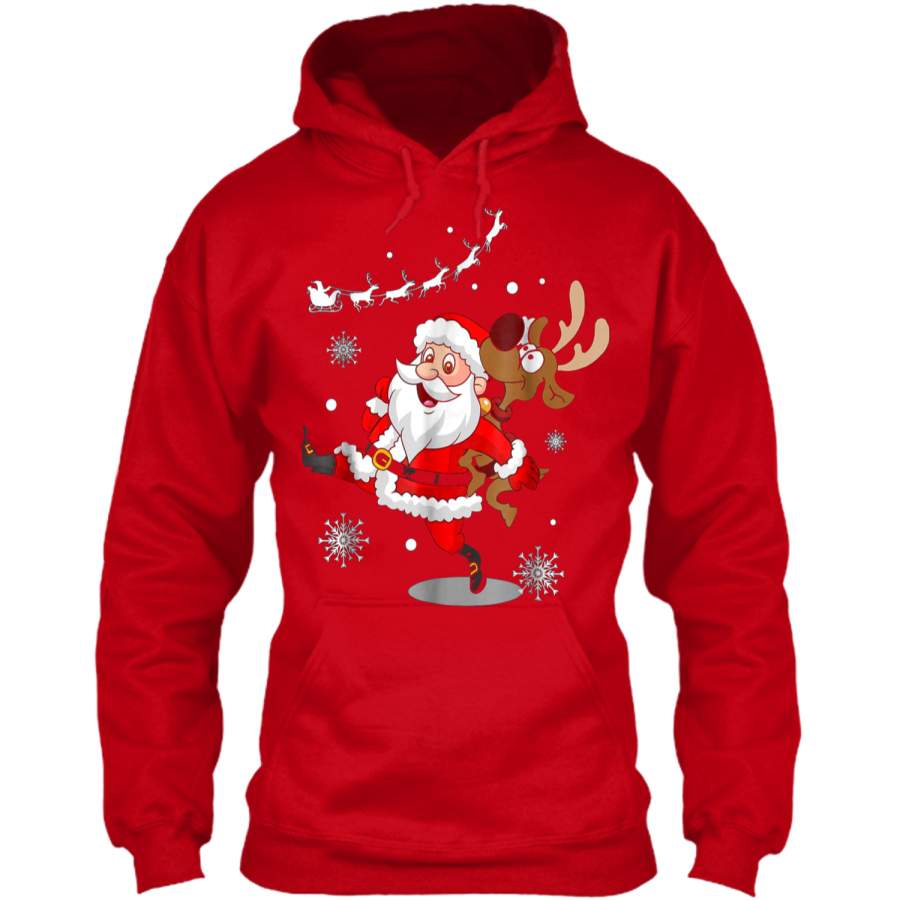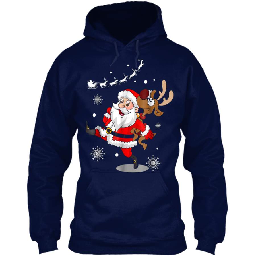 Santa Claus Carrying A Reindeer Christmas Tee Gift Pullover Hoodie Christmas Gift Ideas