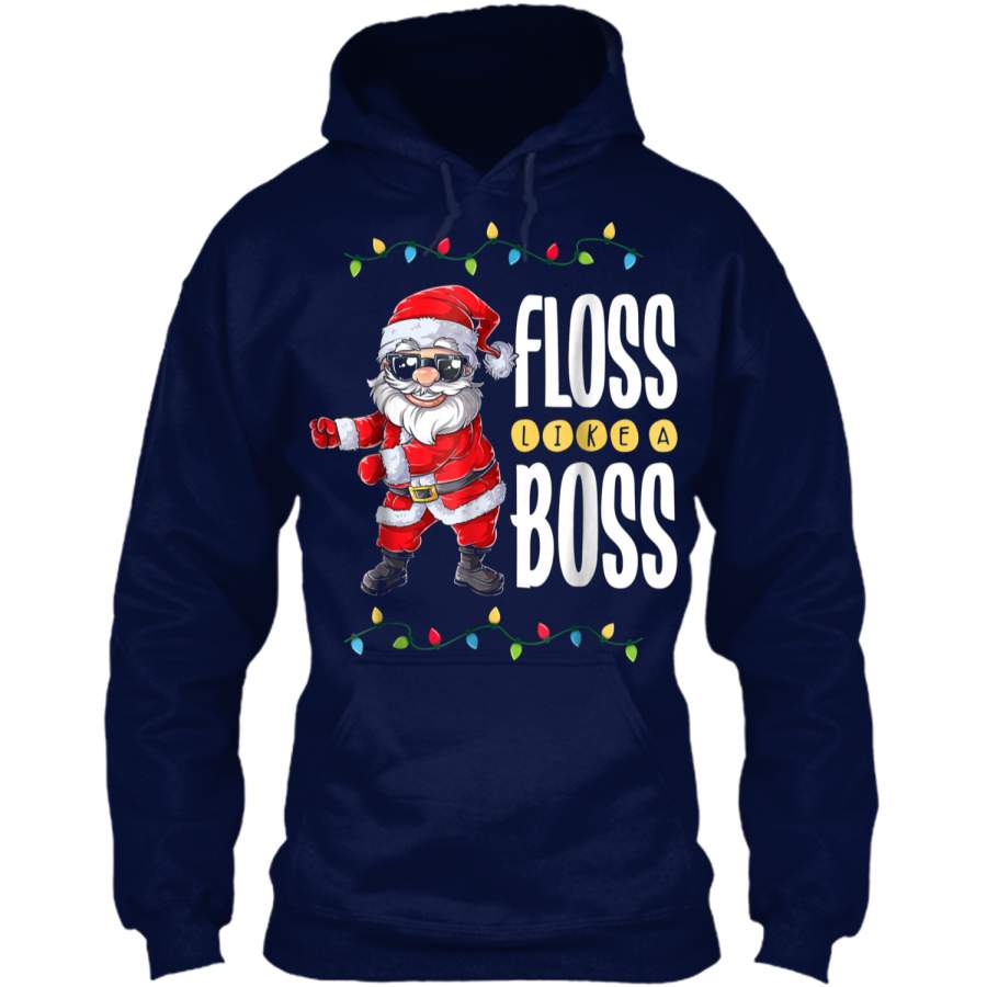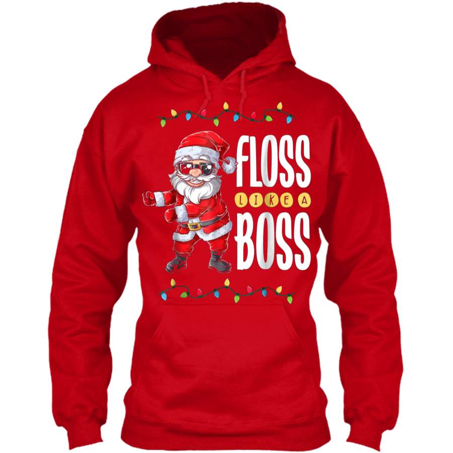 Santa Floss Like A Boss Christmas boys Flossing Xmas Pullover Hoodie 8 oz