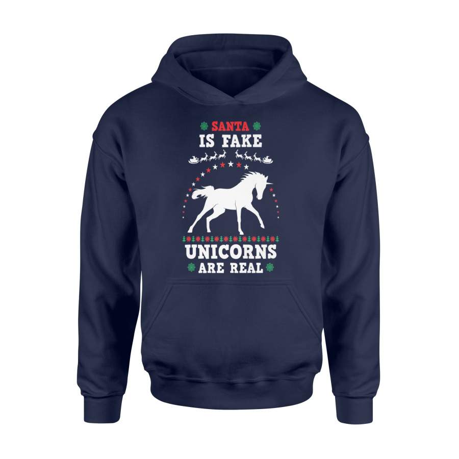 Santa is Fake T-Shirt Unicorn Ugly Christmas Sweater Shirt – Standard Hoodie
